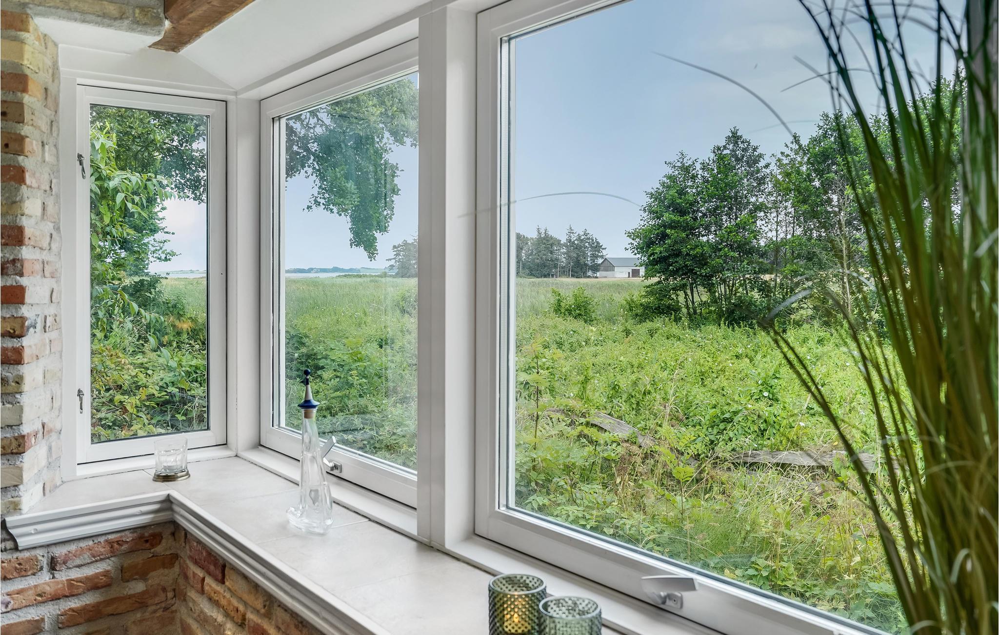 Huset har en rolig placering, og fra grunden er der en fantastisk udsigt til fjordens brede blå linje bag et stykke eng, og længere ude ser I Als. Selve huset byder på gode overnatningsforhold med tre soveværelser, hvoraf to har dobbeltsenge, og det tredje har to enkeltsenge, hvilket giver plads til seks personer. Et af soveværelserne er et gennemgangsrum. I kan se frem til mange hyggelige middage og spilaftener i køkken-alrummet, og efter en tur på stranden, er det skønt at læne sig tilbage i stuen og nyde brændeovnens varm og samme smukke udsigt til fjorden. Loftet over trappen går højt til kip.