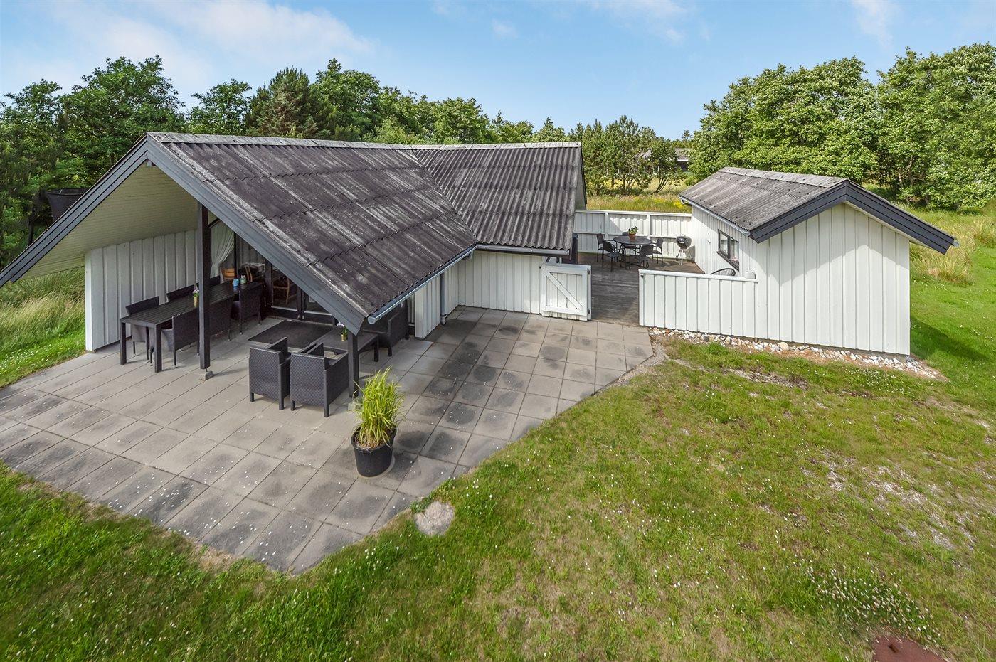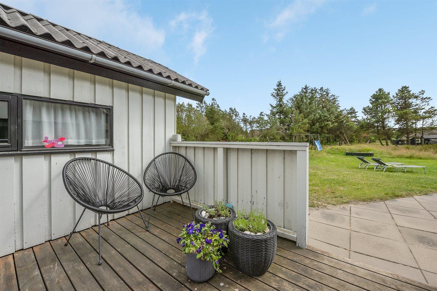 Ferieboligen er beliggende på en 2547 m² stor naturgrund. Der er 1200 m til havet. Nærmeste forretning er beliggende i en afstand af 1000 m. Til ferieboligen hører 55 m² terrasseareal. Desuden er der 12 m² overdækket terrasse. Heraf i alt 23 m² lukket terrasse. Gynge. Sandkasse. Trampolin. Fodboldmål. Parkering ved ferieboligen.