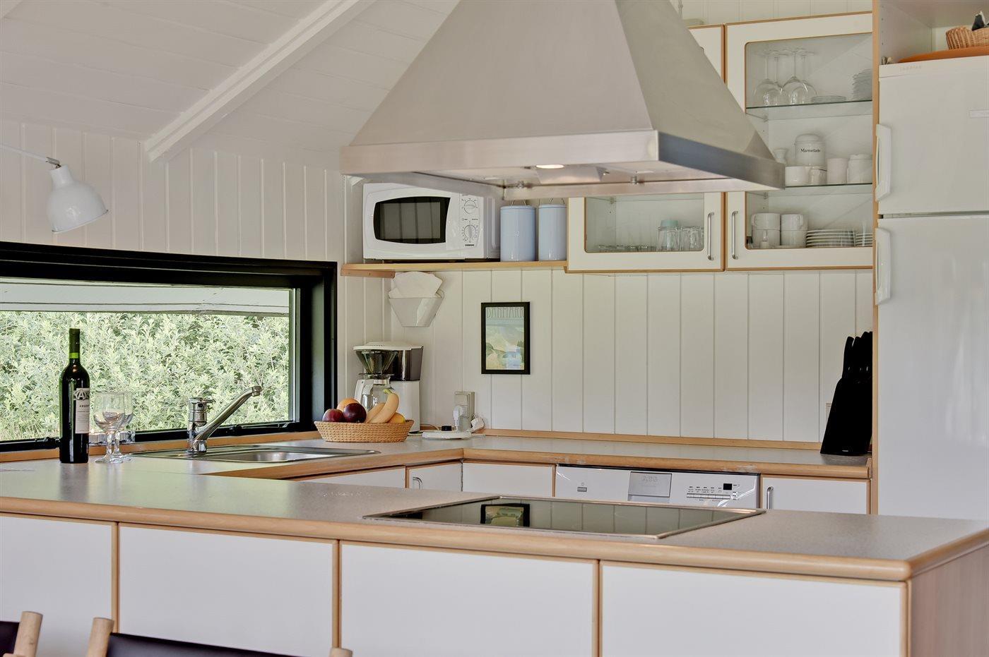 Køkkenet er udstyret med 1 køleskab. Der er 4 keramiske kogeplader, varmluftovn, mikrobølgeovn samt opvaskemaskine.