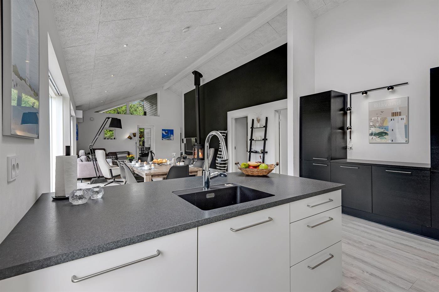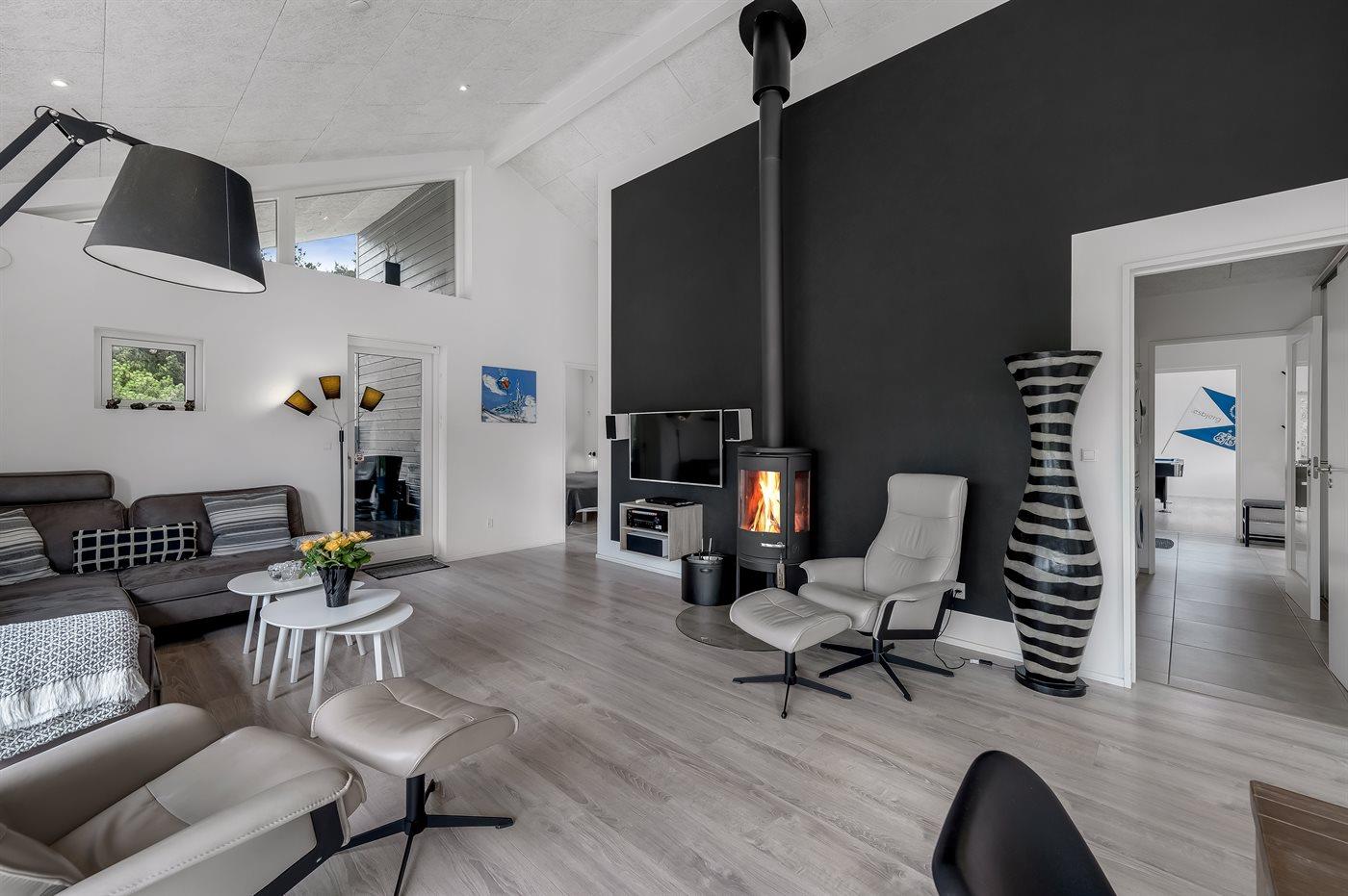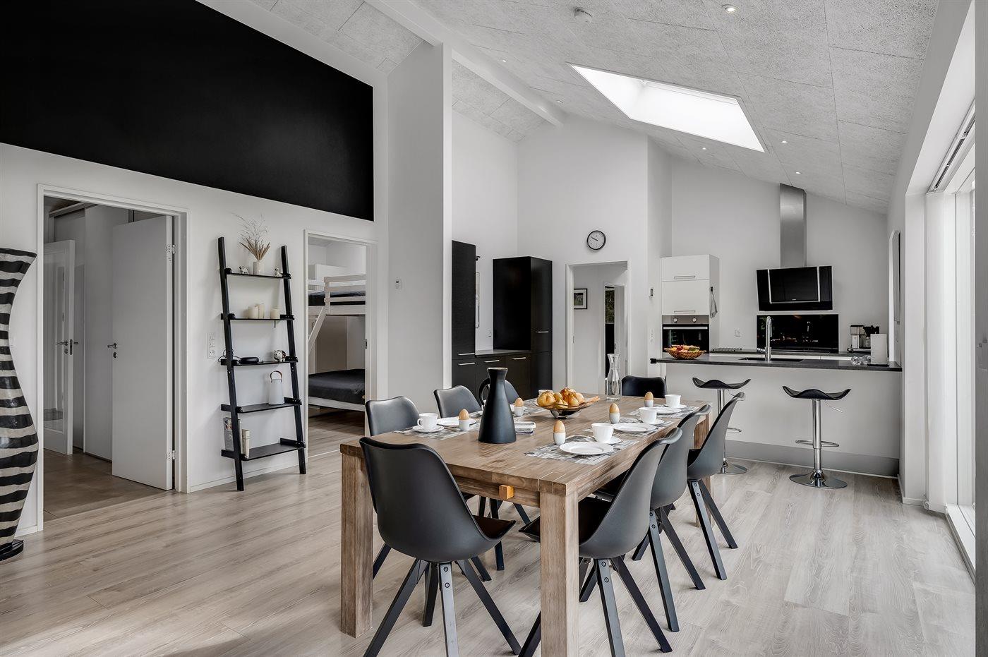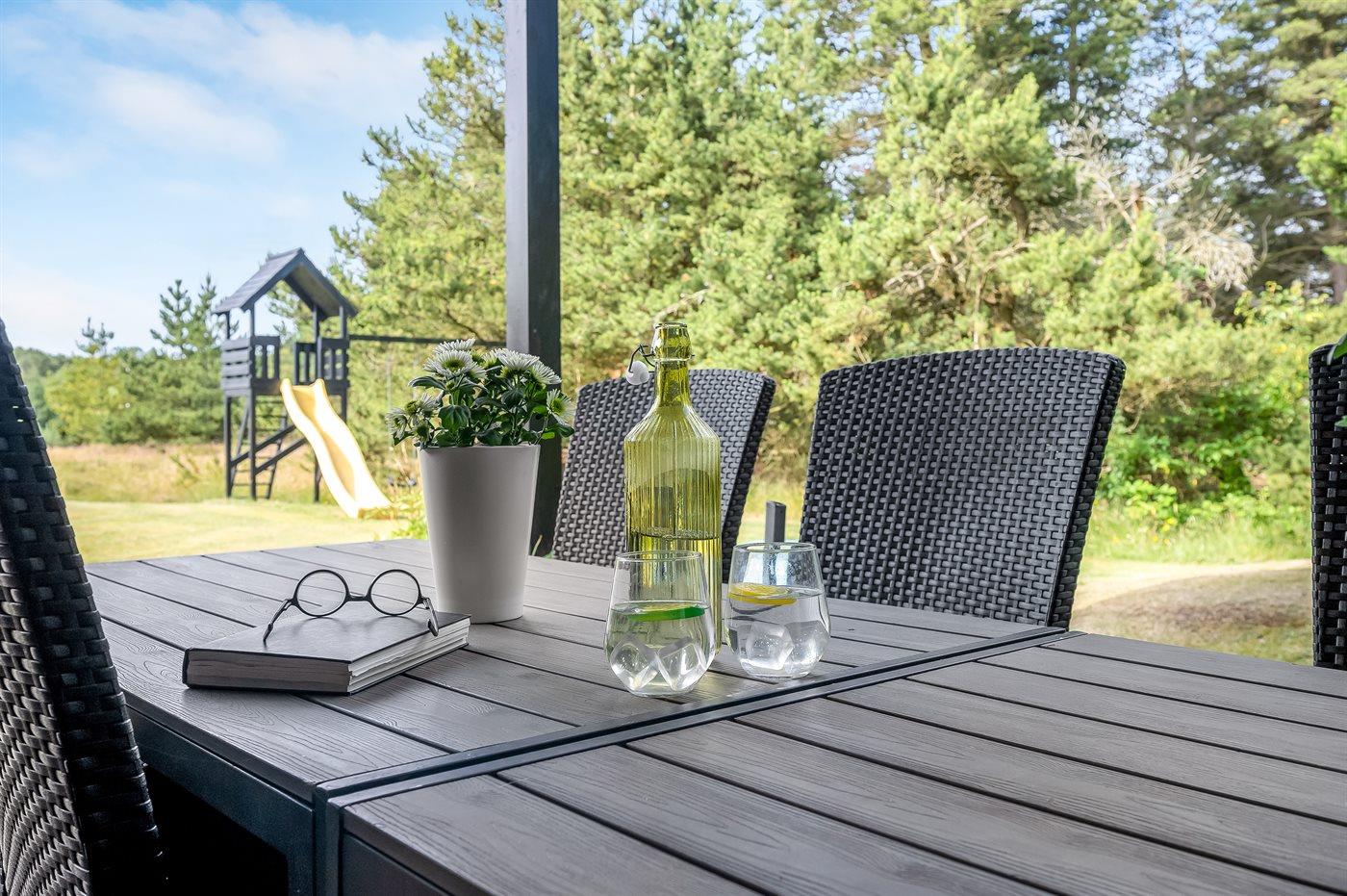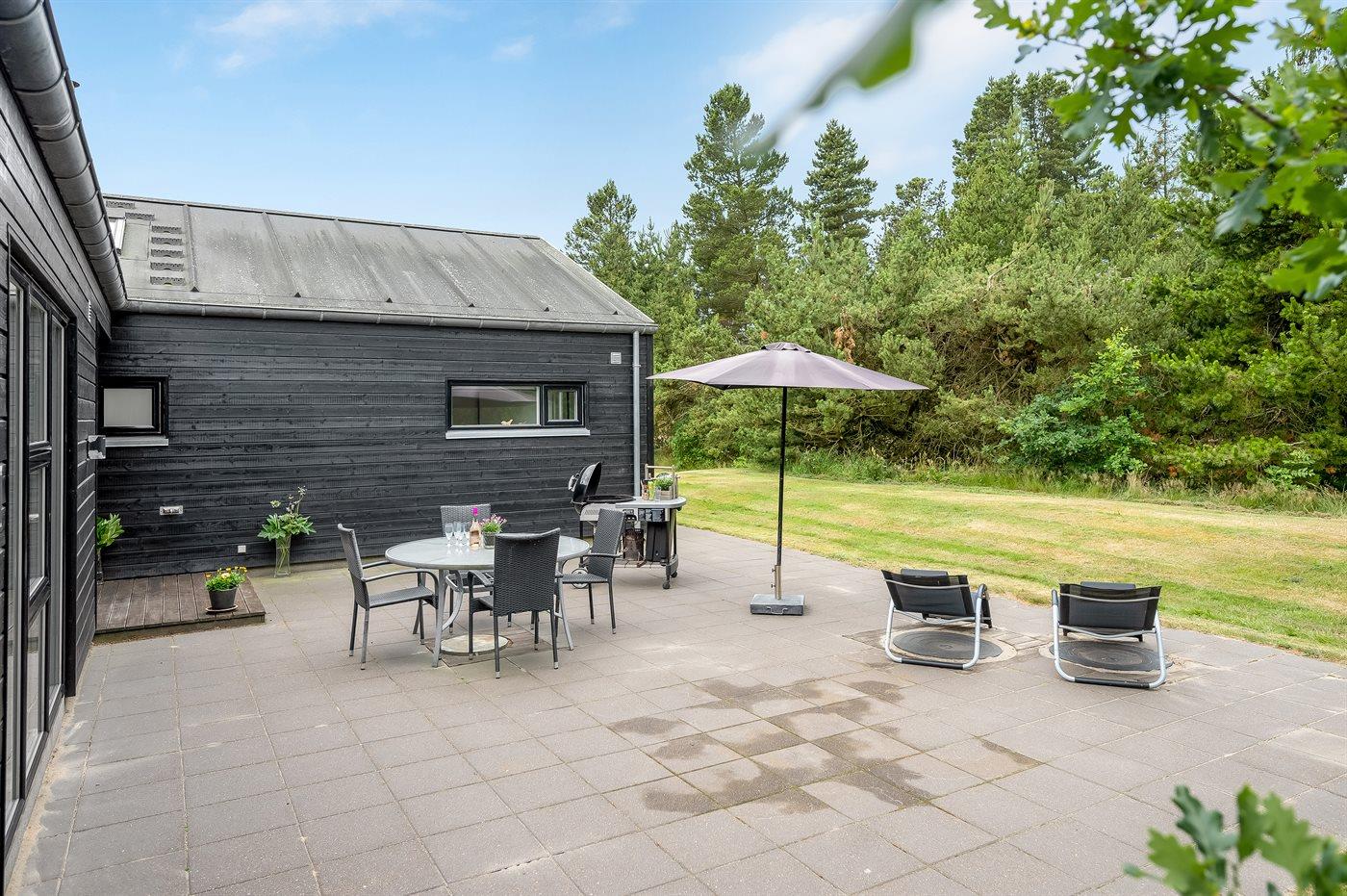 Sommerhuset er smagfuldt indrettet i moderne design. Beliggende på en stor naturgrund i et roligt og populært ferieområde, en frisk gåtur fra nok Danmarks bedste badestrand og det aktive butiksmiljø. Til huset hører dejlige terrasser, hvoraf en er overdækket, hvor I kan slappe af med en god bog eller nyde et måltid i det fri. Børnene er der også tænkt på, da der findes gode legeredskaber på grunden. Alt i alt et skønt sommerhus til en vellykket ferie!