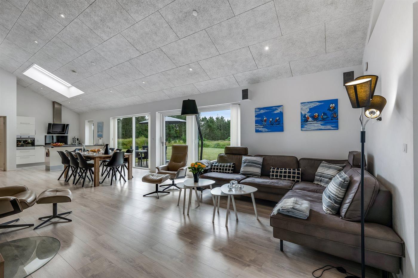 Moderne sommerhus i Blåvand med spa, sauna, aktivitetsrum og store terrasser tæt på stranden.