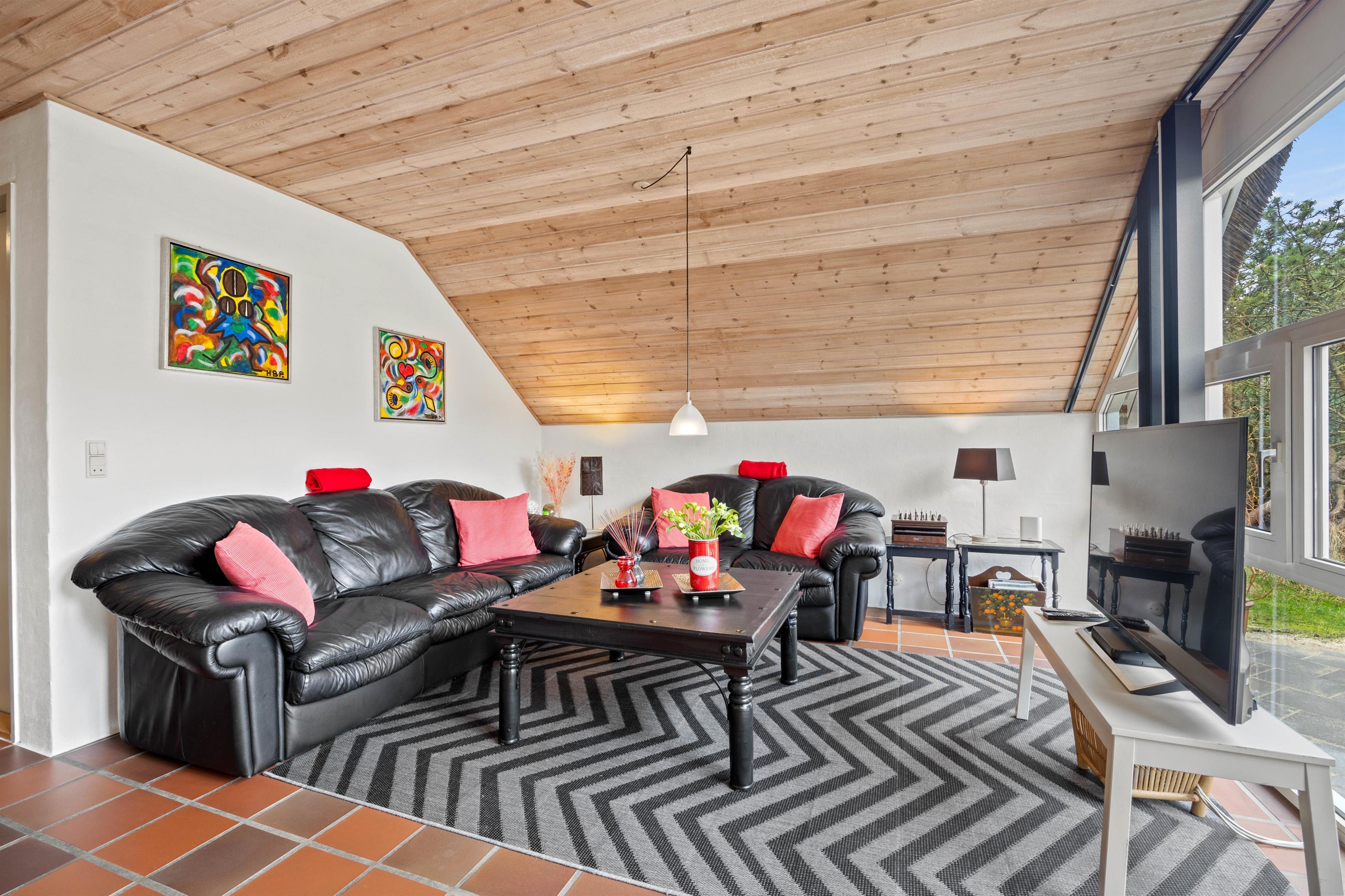 Feriehuset på Vestermarken 5B er arkitektonisk spændende og har en helt speciel atmosfære med en dejlig feriestemning. Der er god plads i den store vinkelstue med brændeovn, så alle kan føle sig hjemme. Den omkostnings- og energibesparende varmepumpe sørger for behagelige temperaturer i feriehuset. Det åbne opholdsrum bliver samlingspunktet for fælles måltider, men også for hyggelige aftener foran fjernsynet og ved det lange spisebord, hvor I kan spille kort eller brætspil sammen. Sofaen indbyder til at læse en god bog eller se en god film. I det åbne køkken finder I alt, hvad I behøver for at forkæle hinanden med lækre måltider, herunder mikroovn, køleskab, induktionskomfur og en separat fryser på 90 liter.