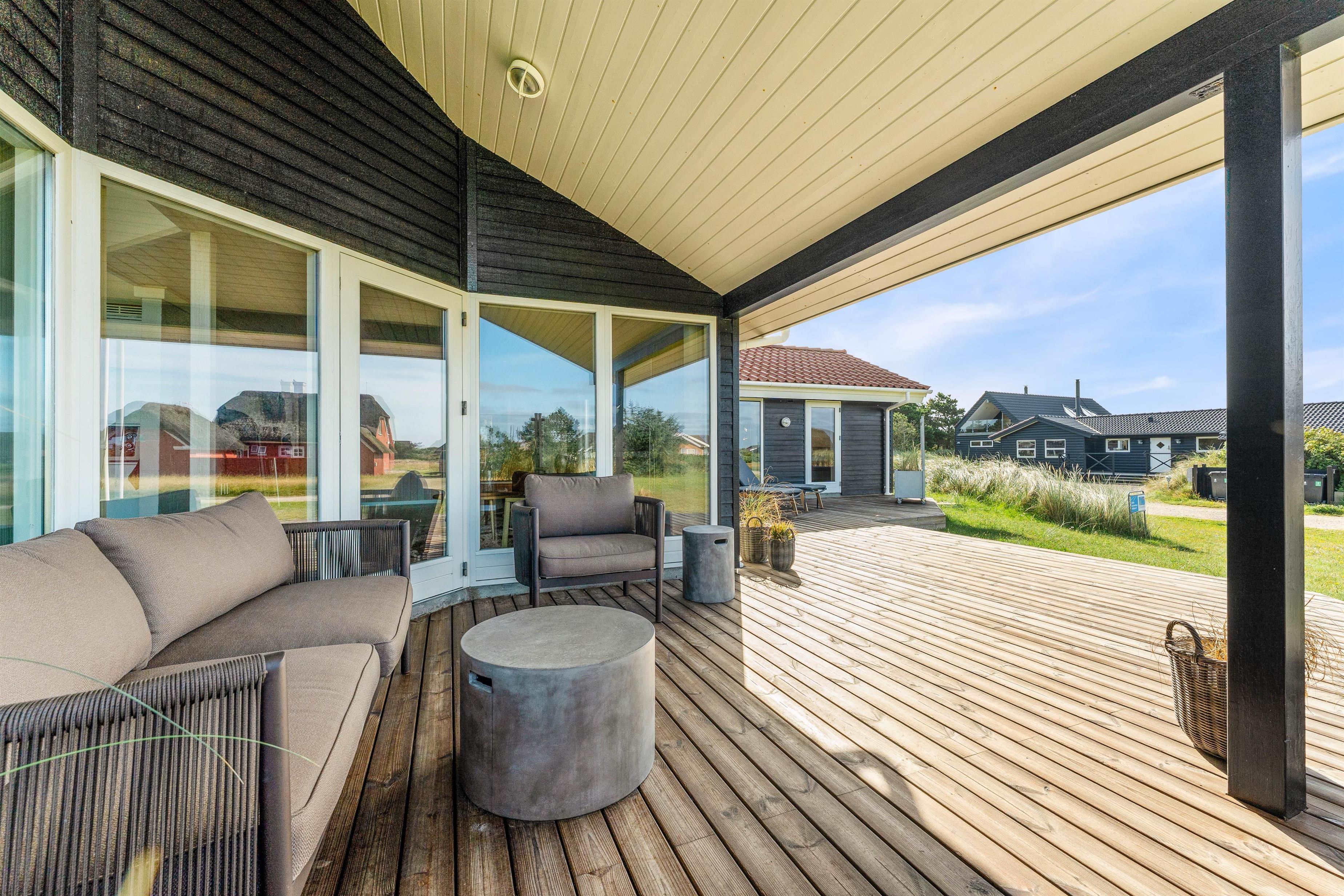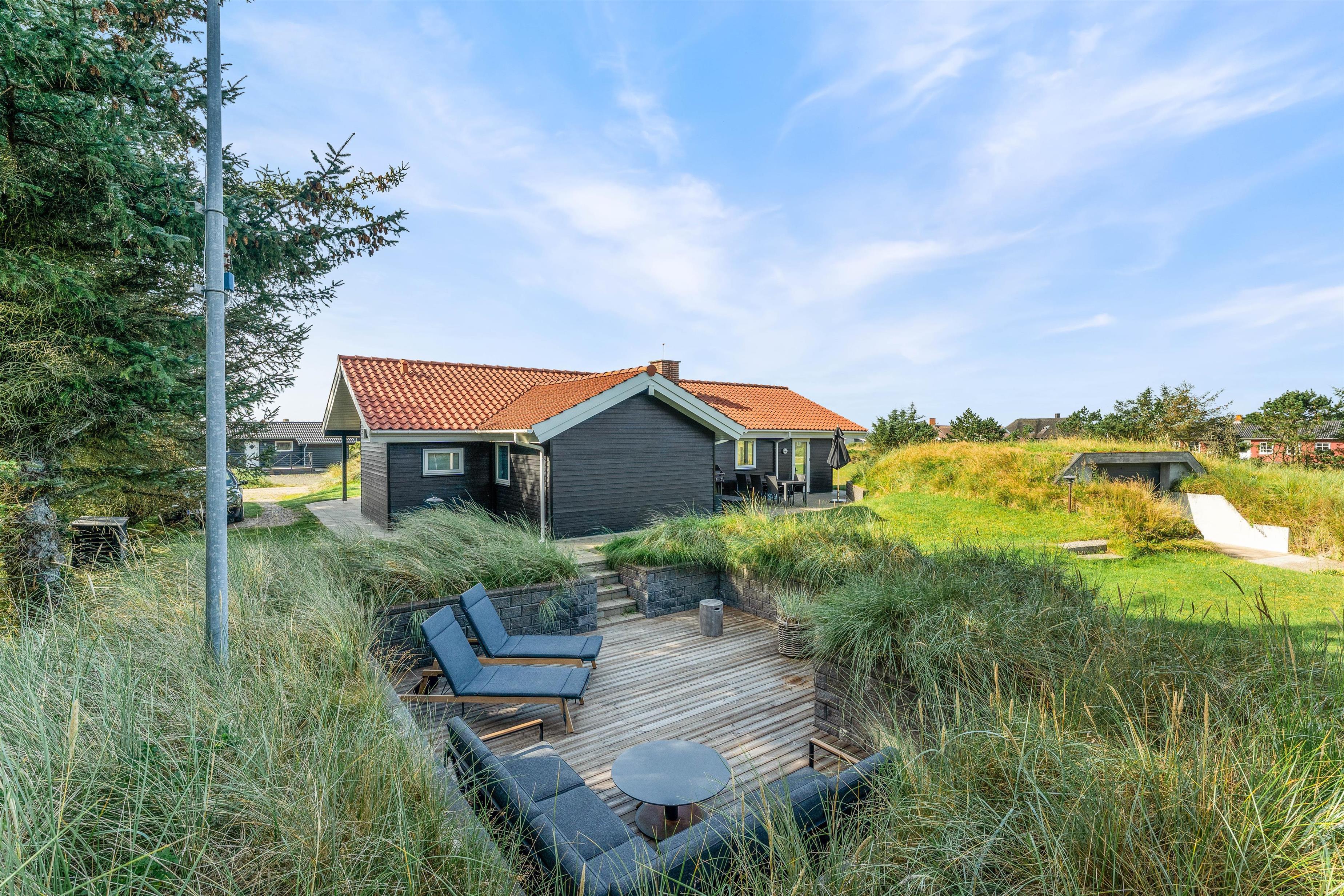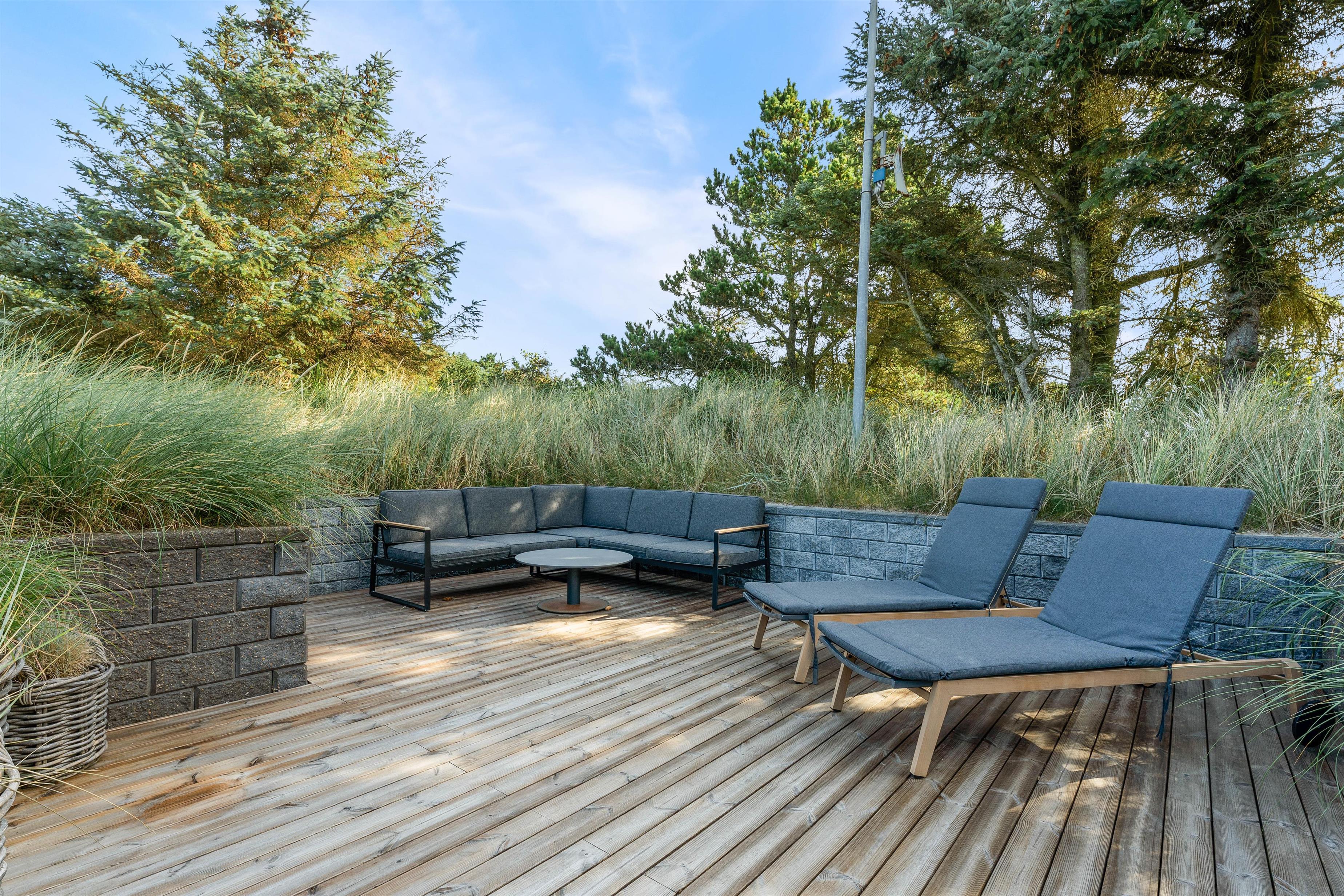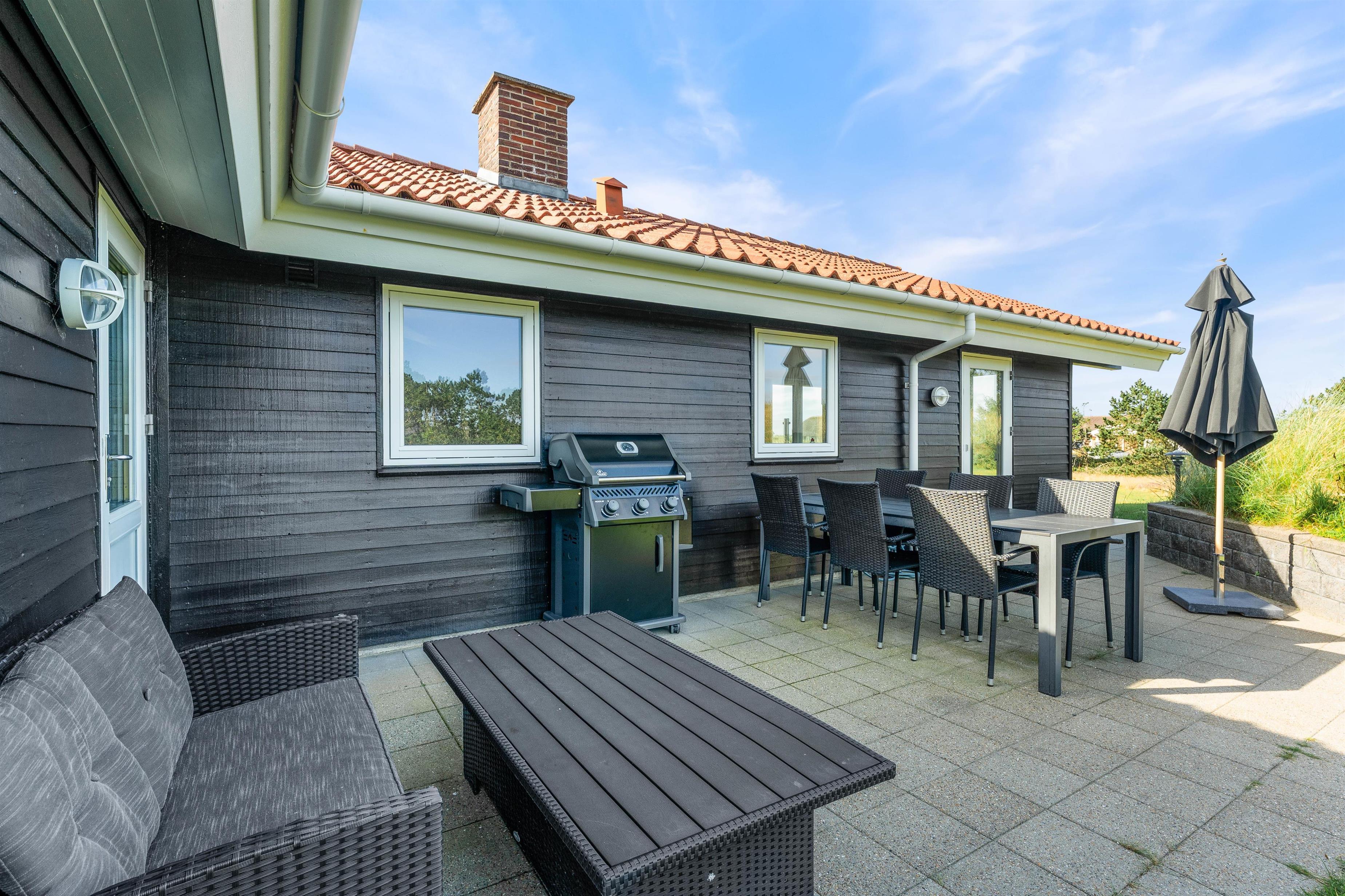Der er flere gode og alsidige terrasser rundt om sommerhuset, hvor I kan nyde den friske luft og det gode vejr, mens Vesterhavet bruser i baggrunden. Der er sørget for havemøbler, liggestole og en praktisk gasgrill, så I hurtigt kan varme grillen op og tilberede et lækkert feriemåltid i aftensolen.