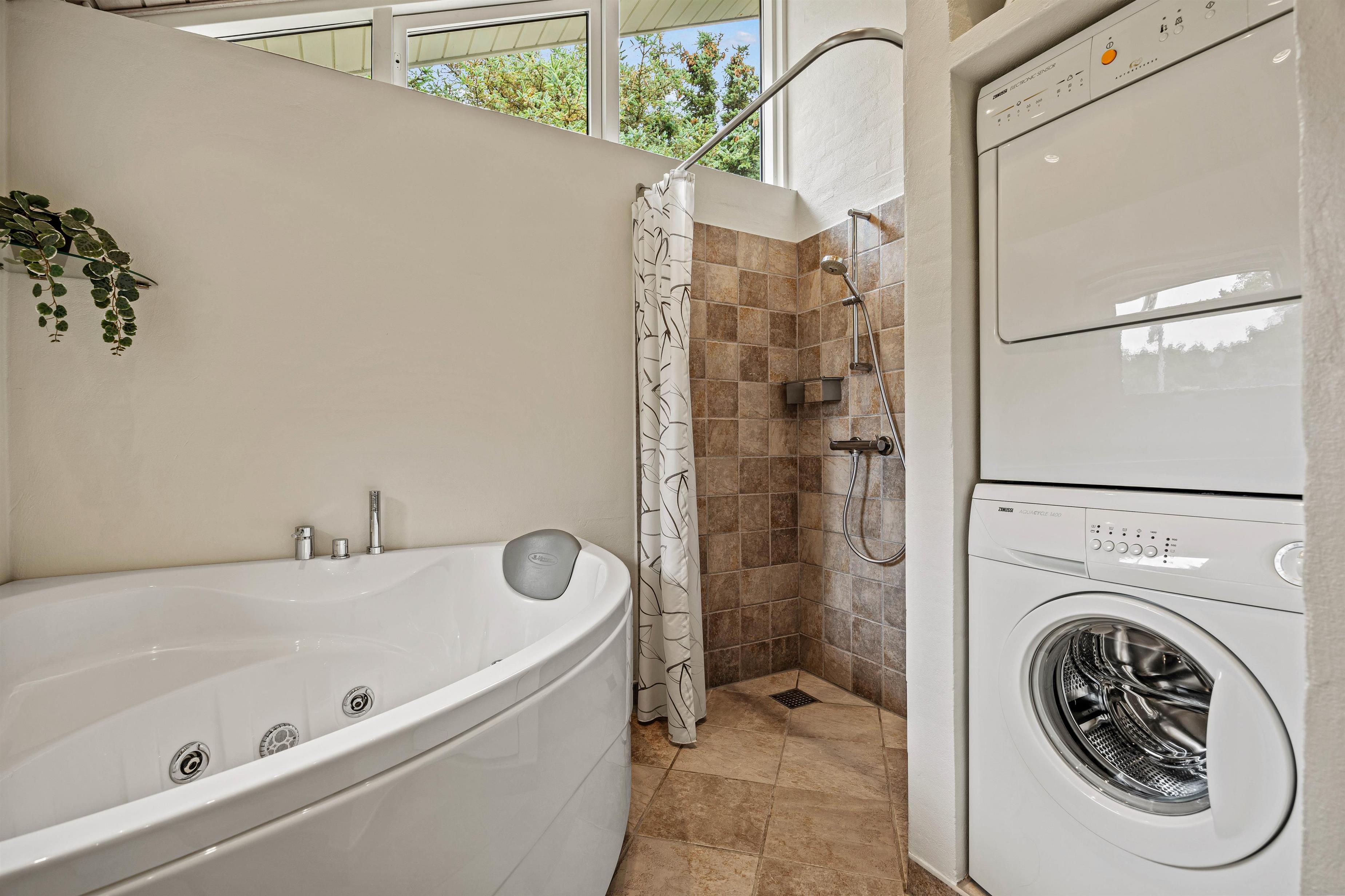 I det velholdte sommerhus er rammerne virkelig sat for en afslappende ferie ved Vesterhavet. Badeværelset er indrettet med spabad, så I kan nyde godt af lidt ekstra wellness, og brændeovnen i stuen tilfører både hyggelig feriestemning og god varme med sine knitrende flammer.