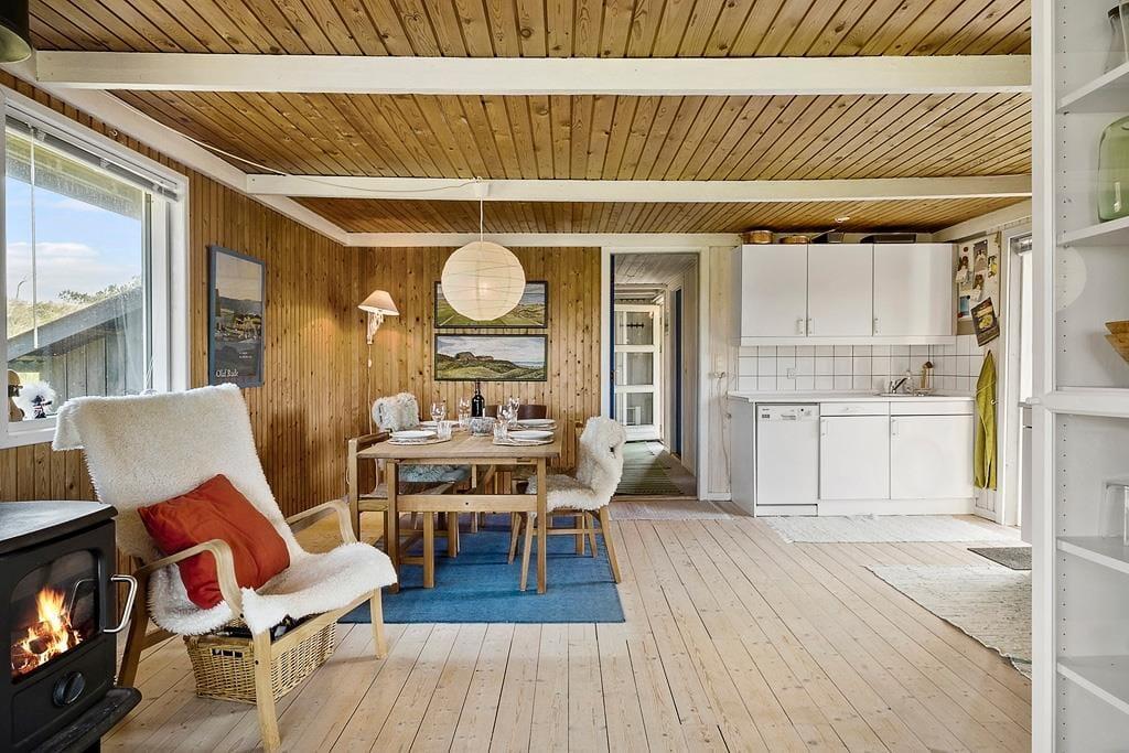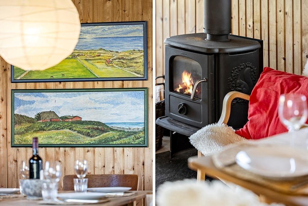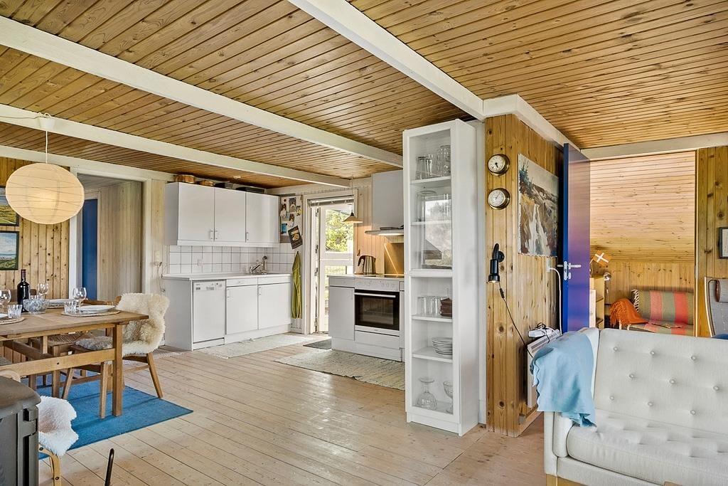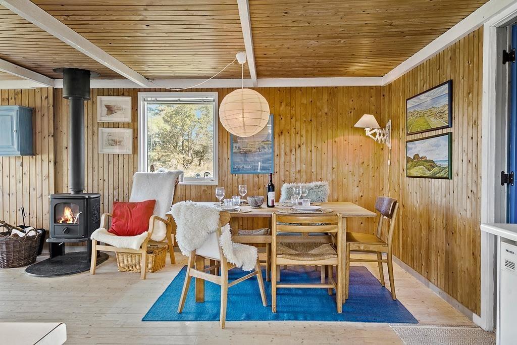 Indenfor bliver du mødt af en hyggelig og varm atmosfære, hvor naturens elementer er trukket med ind i indretningen. Stuen er stor og indbydende med brændeovn, der skaber en skøn stemning på kølige aftener. Her kan du synke ned i sofaen med en god bog eller samles med dine nærmeste til brætspil og hygge. Køkkenet er funktionelt og godt integreret i opholdsrummet, så du kan være med i samtalen, mens du forbereder dagens måltider. De store vinduespartier giver et flot kig ud over området, så du kan nyde den betagende udsigt, selv når du er indendørs.