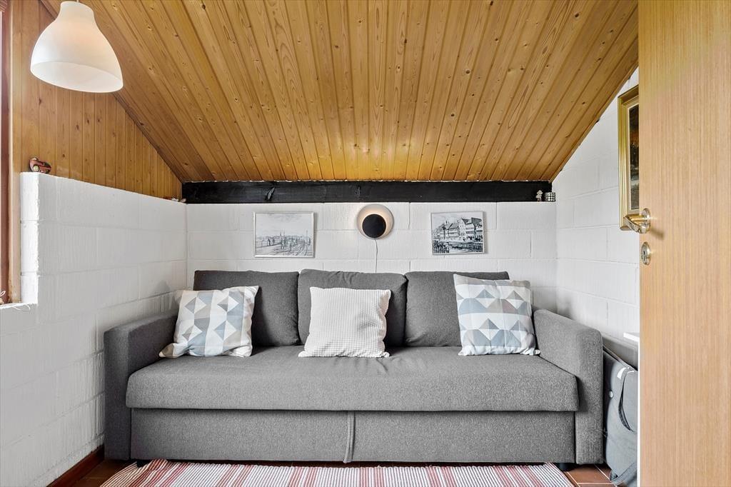 Med tre soveværelser, et badeværelse og en stue med integreret køkken har I alt, hvad I skal bruge for at slappe af og nyde livet i det 80 m2 store sommerhus. På værelserne er der to enkeltsenge, en køjeseng og en dobbelt sovesofa at gøre godt med, mens brusebadeværelset byder på en vaskemaskine, hvis I skulle får brug for at vaske tøj i løbet af ferien. Opholdsafdelingen er det helt rette sted at hygge sig – uanset om I er i humør til at spille backgammon ved spisebordet, kræse om maden i køkkenet eller slappe af i sofaen med strikketøj, krydsogtværser og gode bøger. Stuens tv er med Chromecast, så I kan også bruge eftermiddagen eller aftenen på at streame film og serier.