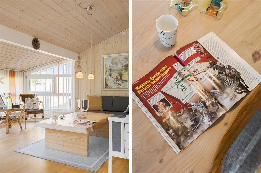 Sommerhuset, der er opført i 2002, præsenterer sig på køn og klassisk vis med sin gråmalede træfacade og grønt sedumtag. Inden døre er atmosfæren lys og venlig, og der er mange gode detaljer at hæfte sig ved – ikke mindst på badeværelset, hvor I kan fylde dagene med wellness i form af varme spabade og saunature. I opholdsrummet er der store vinduespartier, brændeovn og loft til kip, og der er flere gode siddepladser at vælge imellem, alt efter om I vil bladre i magasiner, se tv-serier på fladskærmen, drikke kaffe eller noget helt fjerde. Det åbne køkken er veludstyret, så det er nemt at fremtrylle noget lækkert at spise, og når det er sengetid, har I tre gode soveværelser at fordele jer på.