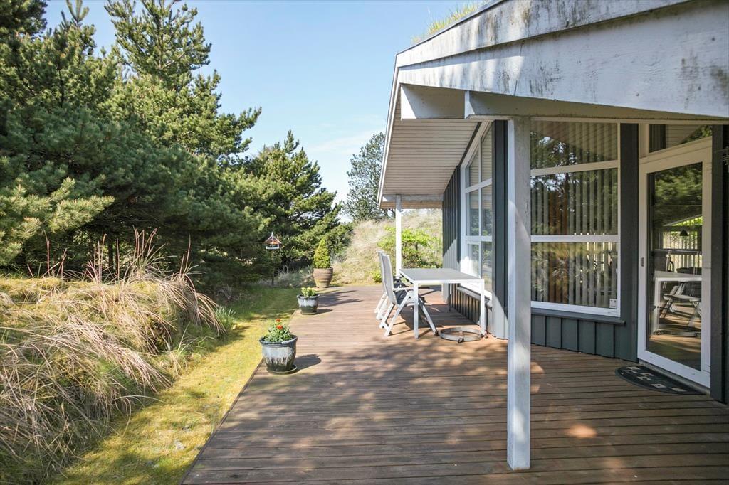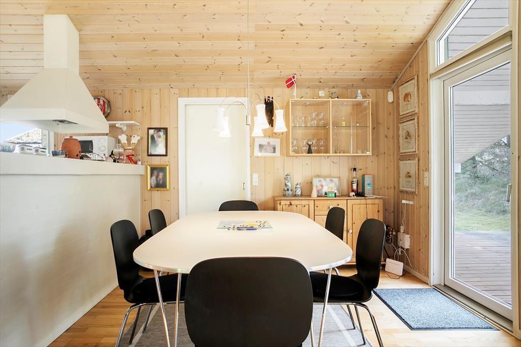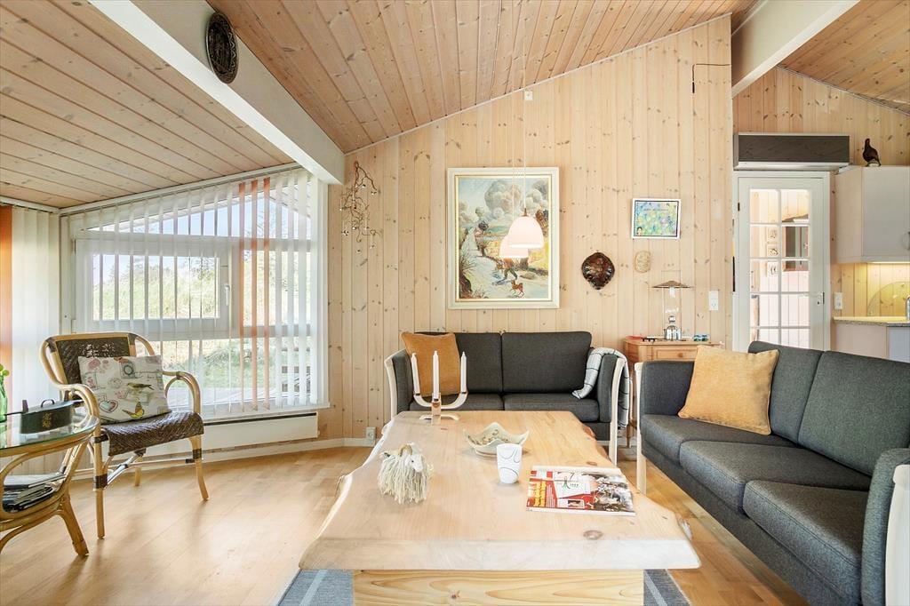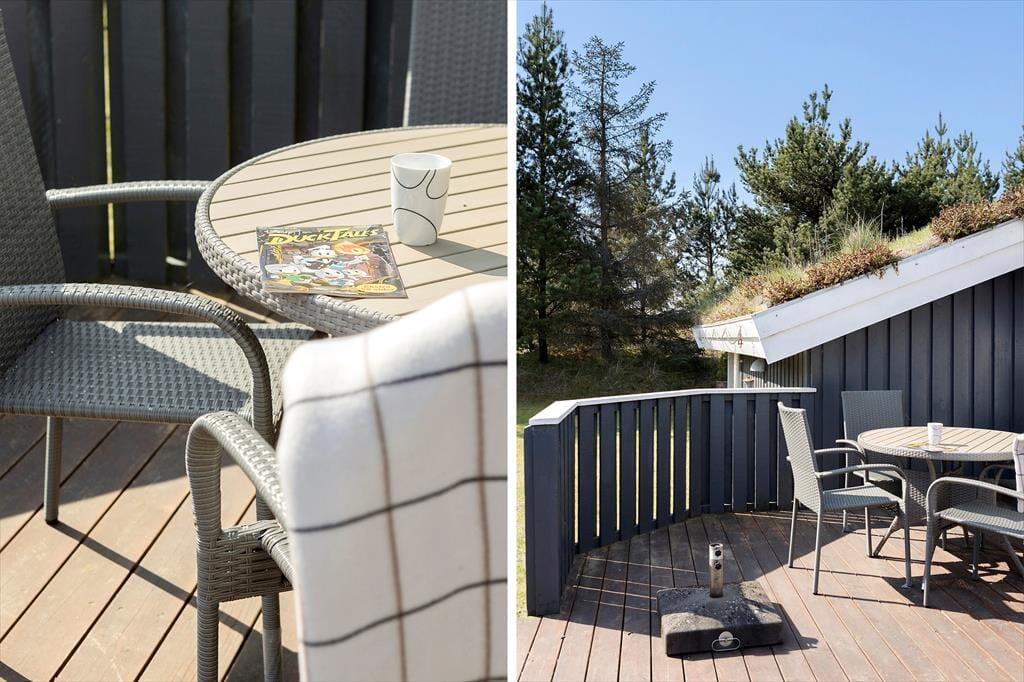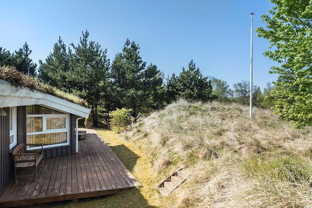 Den 1569 m2 store grund ligger fredeligt for enden af en lukket vej og lige ud til et naturskønt areal. Med andre ord ånder alt fred og idyl, hvilket passer perfekt til de langsomme terrassedage, hvor man bare drømmer om at flade ud i en liggestol eller pløje sig igennem den seneste krimi. Rundt om sommerhuset er der flere gode terrasser at vælge imellem – blandt andet en delvist overdækket sydterrasse og et opholdsmiljø, der ligger godt i læ ind mod udhuset.