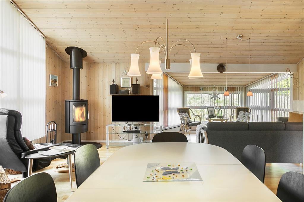 På den lille, lukkede vej Lyngdraget byder dette hyggelige og velholdte sommerhus jer velkommen til en dejlig ferie. Inden døre kan I slappe af nær stuens brændeovn eller i spabadet og saunaen, og ude kommer terrasselivet til at udspille sig i flotte og fredelige omgivelser på den store naturgrund.