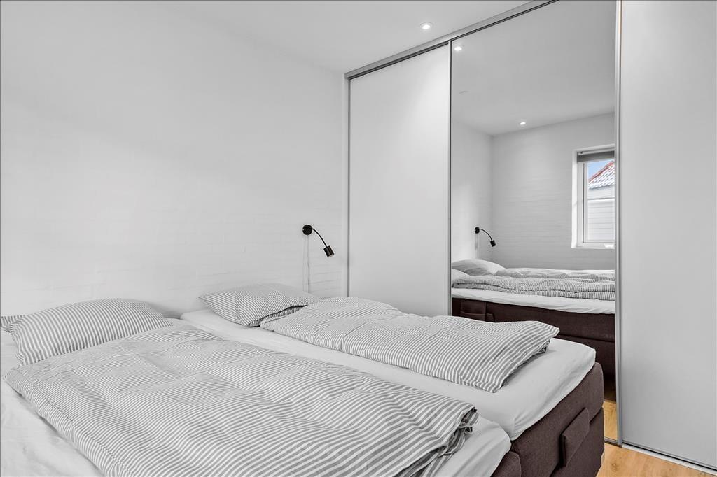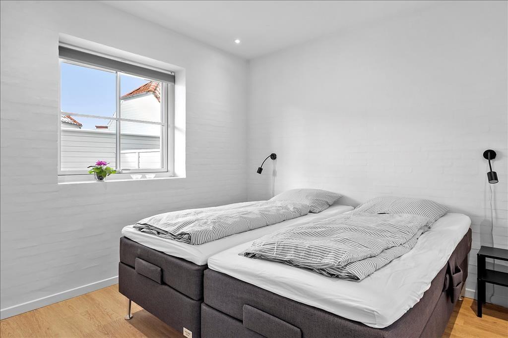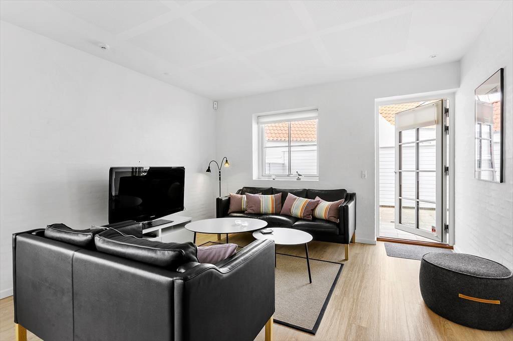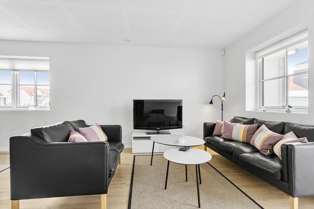 Lejligheden ligger i et nyere byggeri, der med hvidpudset facade og rødt tag falder harmonisk ind i bylandskabet i det centrale Blokhus. Der hører egen p-plads til lejligheden, så I skal ikke bekymre jer om at finde parkering, når I ankommer. Indenfor er der en lys og behagelig atmosfære og en god indretning til ferieturens hyggelige samvær. Lejligheden består af en stue i åben forbindelse med et køkken samt to soverum og et badeværelse. Køkkenet er lækkert indrettet med grebsfri elementer, og der er god plads til de kulinariske udfoldelser. I opholdsrummet er der et godt gennemstrømmende lys, og I får både spiseafdeling og sofahjørne.