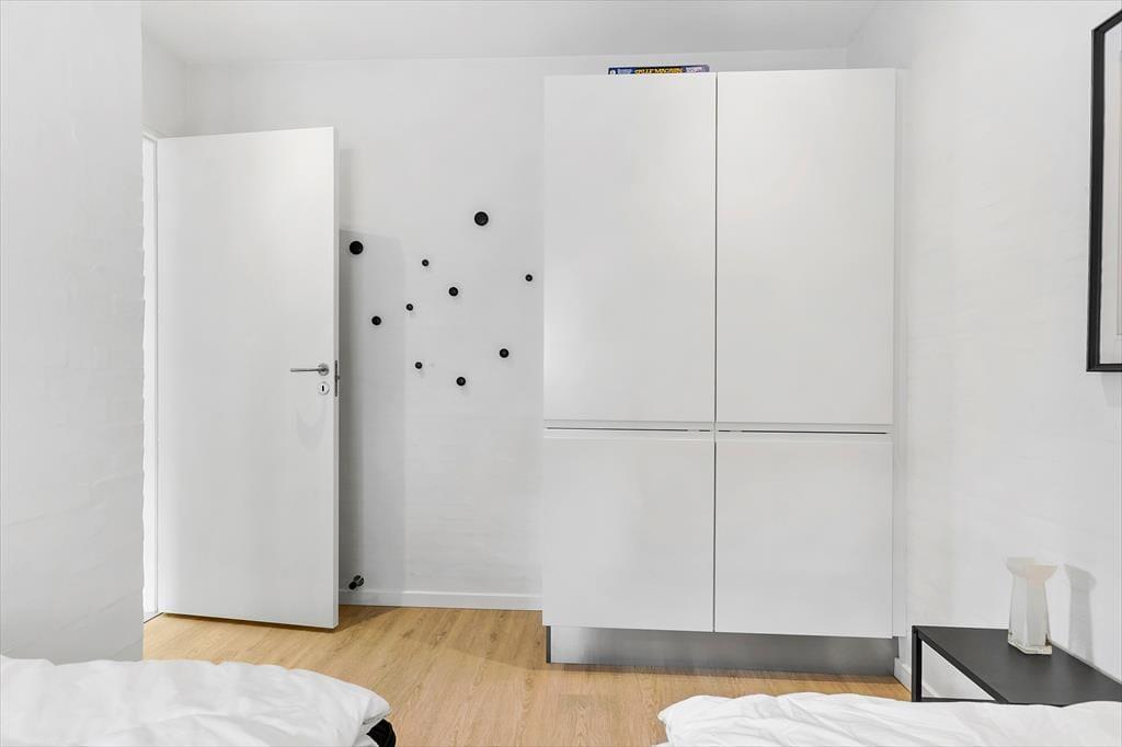 Fra opholdsrummet er der udgang til terrasser på begge side af bygningen. Mod øst er der en terrasse med morgensol, og mod vest er der en lukket gårdhave med aftensol, som er delvist overdækket. Her får I en dejlig, privat oase midt i byen, hvor I også kan nyde aftenstunden udenfor, selvom det skulle dryppe lidt fra oven.