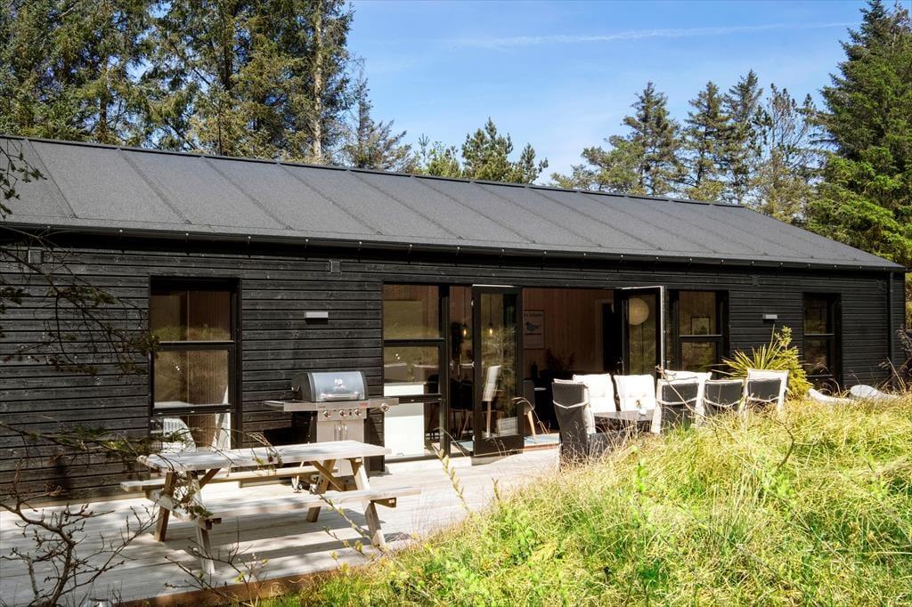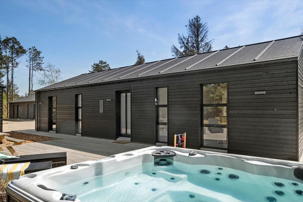 Der er lagt op til en rigtig livsnyderferie her på Plantagevej. Dette moderne træsommerhus er nemlig stilfuldt indrettet og udstyret med et udespa på den store naturgrund, og så ligger hele herligheden i dejlige, grønne omgivelser i Kryle Klit tæt på Fårup Sommerland, Vesterhavet og Blokhus.