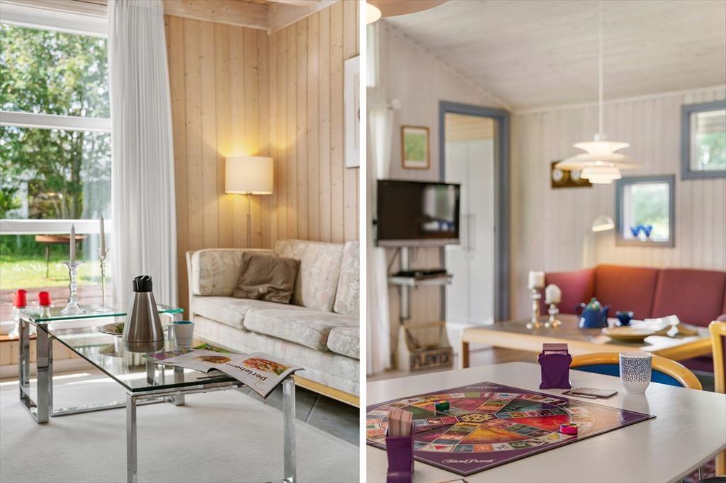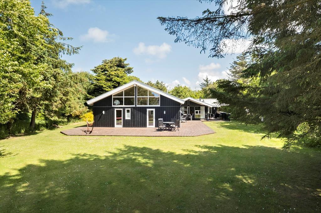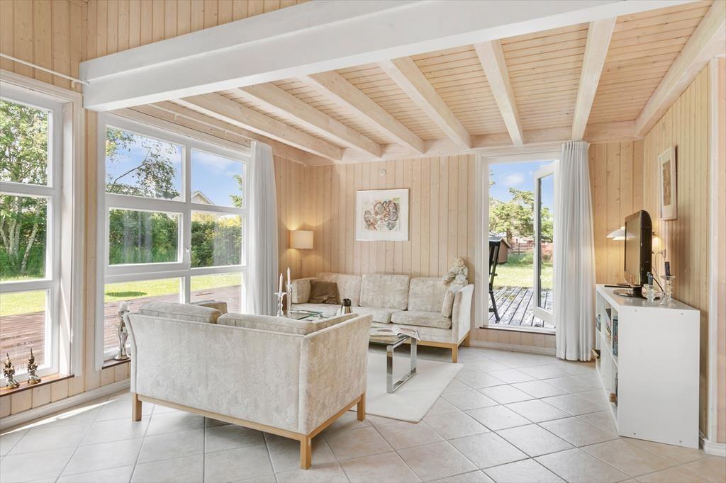 Velkommen til et særdeles velholdt og velplejet sommerhus. Overalt mærker man ejernes sikre sans for god smag i indretning og valg af møbler og materialer. Sommerhuset har plads til ti overnattende personer, så er man to familier, som gerne vil holde ferie sammen, er rammerne her ideelle: fem værelser, to badeværelser og flere opholdsrum til samvær, hygge og afslapning. I spisestuen står en flot brændeovn, og fra flere rum har man adgang til de store terrasser. Det store badeværelse har både spabad og sauna, så her kan man skabe lidt wellnessstemning, og i skuret står både vaskemaskine og tørretumbler, så man hele tiden kan have rent og tørt badetøj. Desuden gratis og trådløst internet, så medbring gerne pc og tablet på ferien.