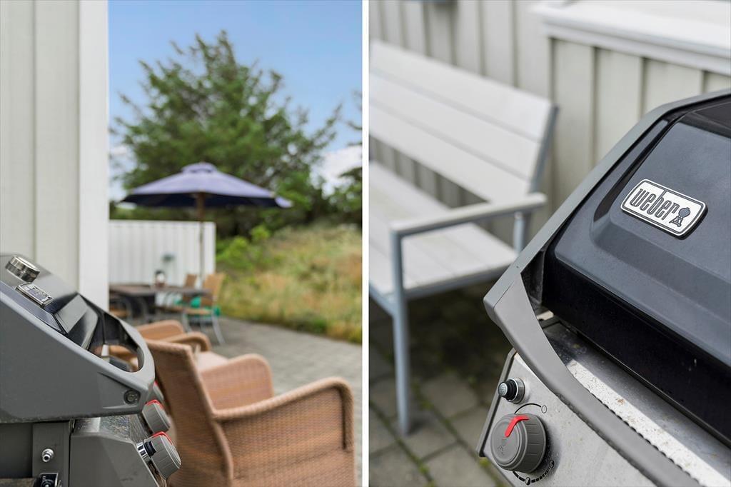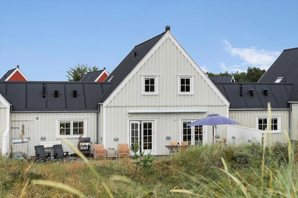 Fra huset er der adgang til både åbne og overdækkede terrasser, der giver masser af muligheder for at nyde det gode vejr. Den sydvendte terrasse er perfekt til at fange solens stråler hele dagen, mens den overdækkede del af terrassen giver skygge, hvis du ønsker en pause fra solen. Du kan slappe af med en god bog i en havestol eller samle familien til et lækkert måltid, tilberedt på grillen. Om aftenen er det hyggeligt at sidde udendørs og nyde den friske luft, mens du måske ser solnedgangen over Blokhus.