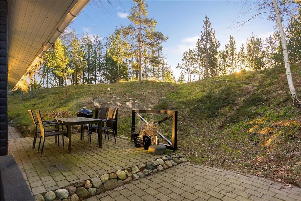 Sommerhuset er omgivet af en flot naturgrund, der indbyder til leg og udendørsaktiviteter. Her kan du lade børnene boltre sig på græsplænen eller nyde en afslappet stund på terrassen. Den store grund giver mulighed for at tilbringe masser af tid udenfor, enten i solen eller i den fredelige skygge fra træerne. Den store, lukkede have er perfekt til at nyde en stille stund eller en middag under åben himmel, og det åbne landskab omkring huset giver dig følelsen af frihed og ro.