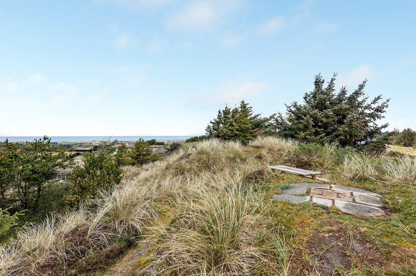 Ferieboligen er beliggende på en 3609 m² stor naturgrund. Der er 850 m til havet. Nærmeste forretning er beliggende i en afstand af 1600 m. Til ferieboligen hører 40 m² terrasseareal. Desuden er der 16 m² overdækket terrasse. Der er redskabsrum. Parkering ved ferieboligen.
