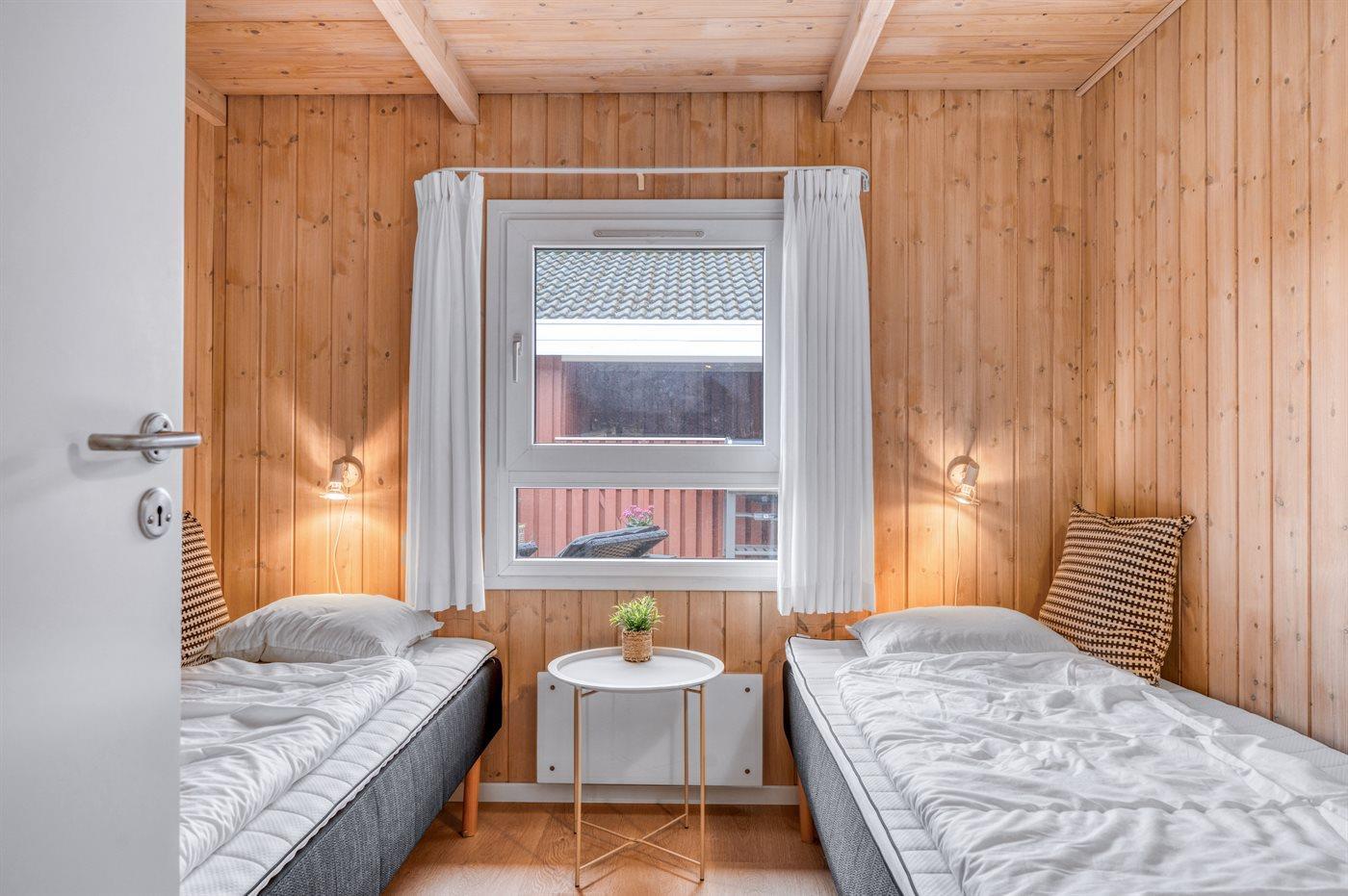 Der er i alt 4 soveværelser. Sovepladserne fordeler sig på: 4 sovepladser i dobbeltsenge. 4 sovepladser i enkeltsenge.