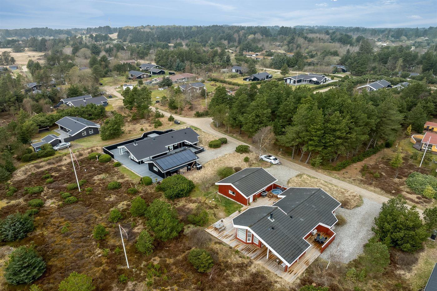 Sommerhuset er beliggende i et skønt, lukket sommerhusområde, som giver en dejlig ro og privatliv. Området er perfekt til en ferie, da du både har kort afstand til de mange aktiviteter i Fårup Sommerland, den brede sandstrand ved Vesterhavet samt den hyggelige by Blokhus med caféer, butikker og restauranter.