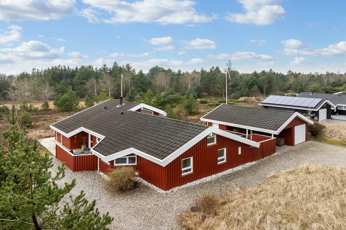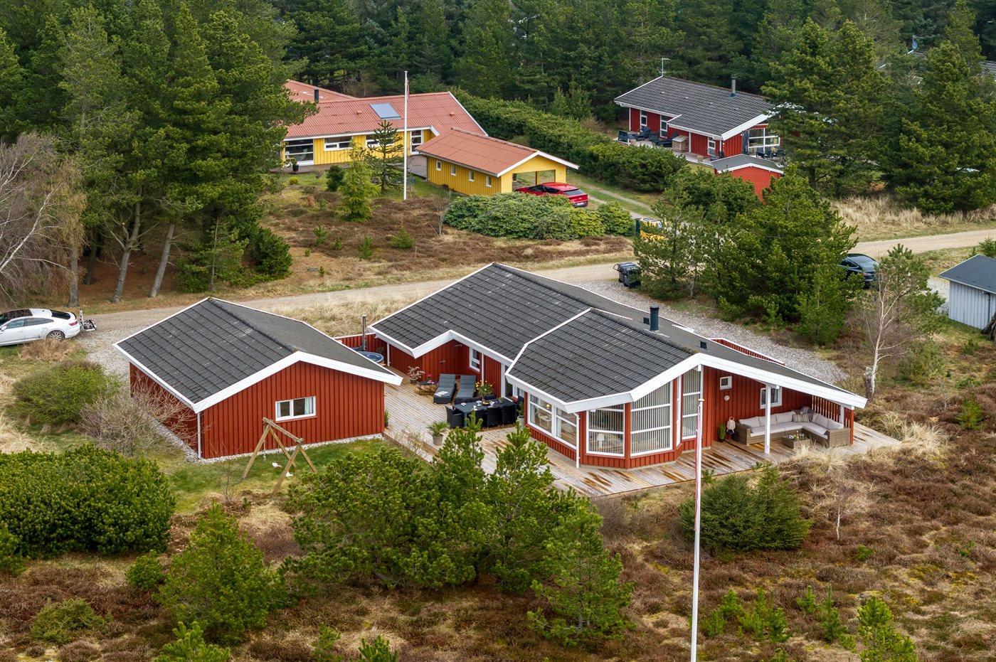 Skønt sommerhus i Blokhus med aktivitetsrum, spa, sauna og stor terrasse i naturskønt område tæt på strand og by.
