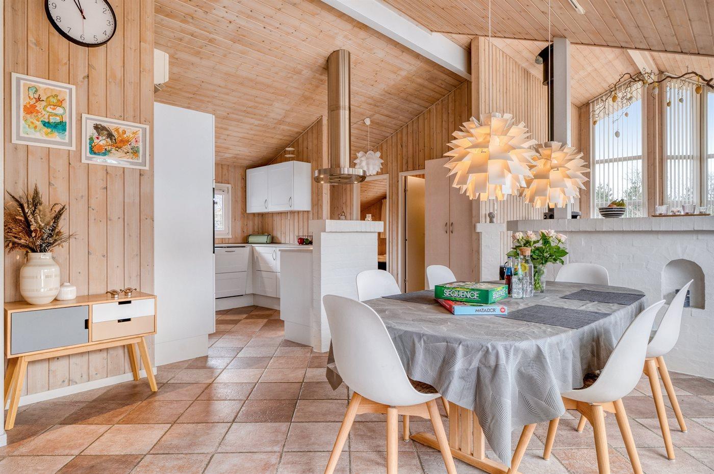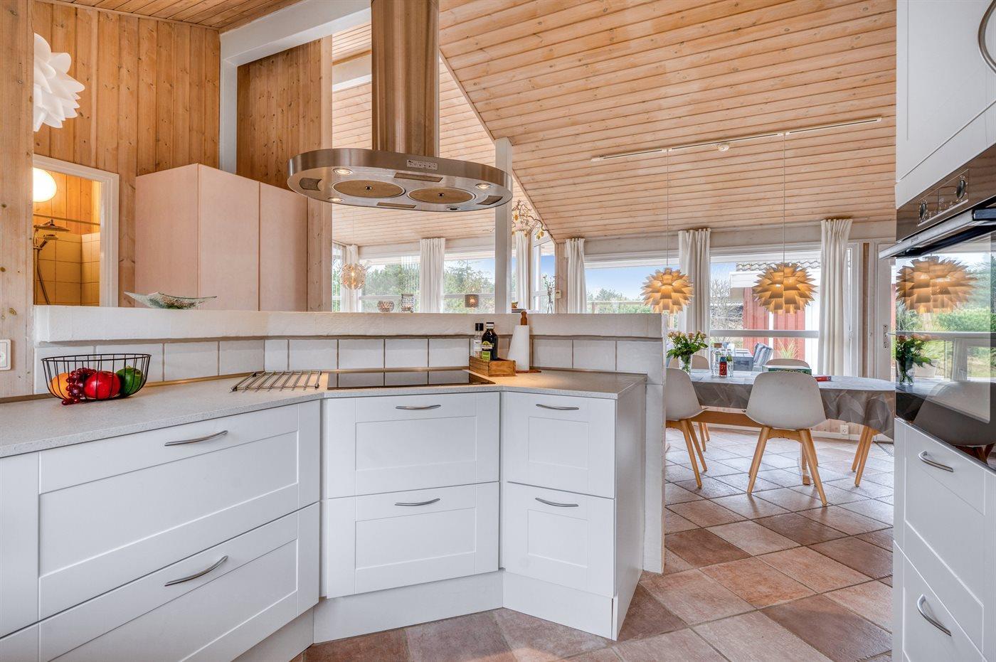 Køkkenet er udstyret med 1 køleskab. Der er 4 induktionskogeplader, varmluftovn, mikrobølgeovn samt opvaskemaskine.