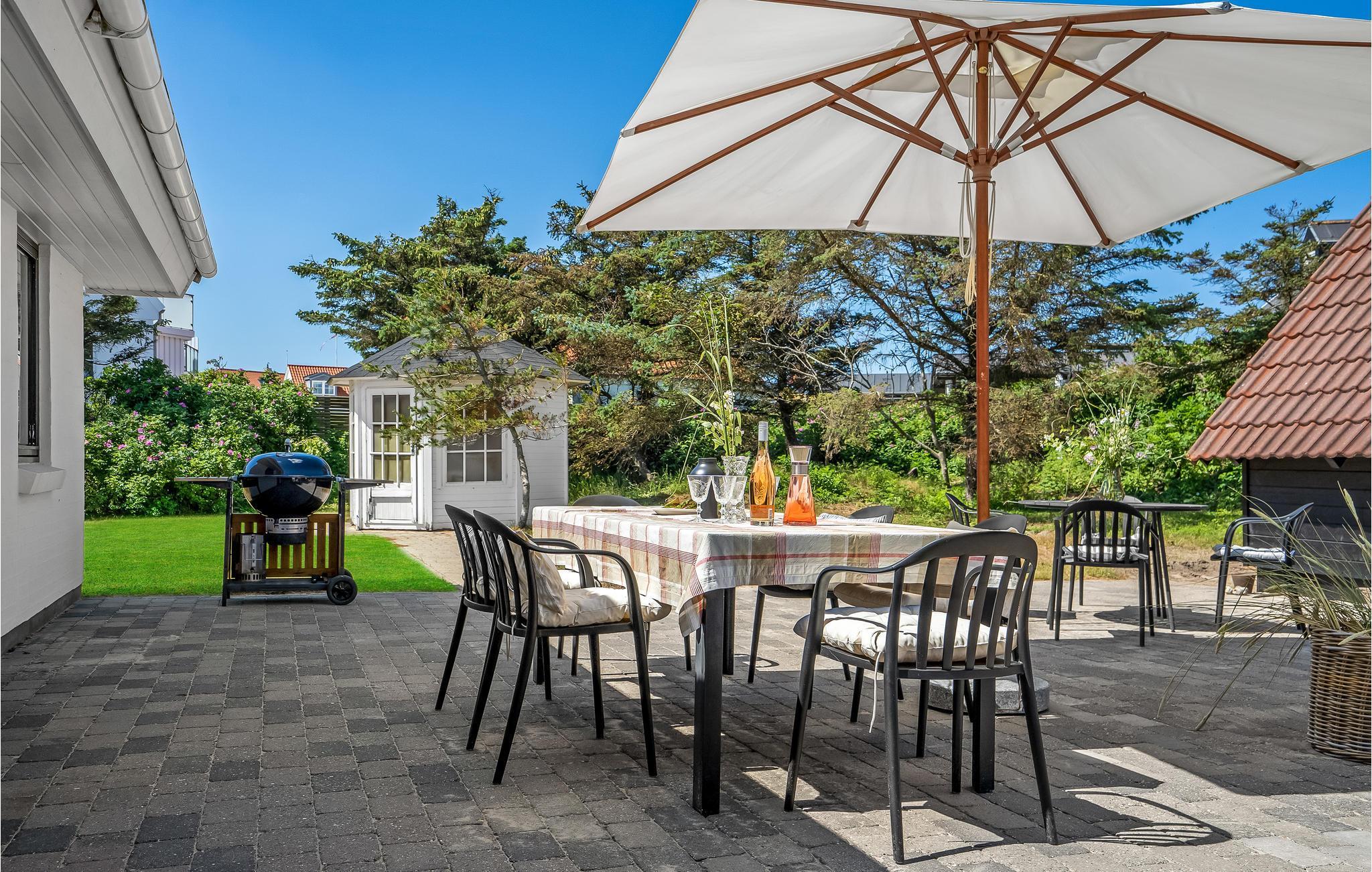 På terassen, som er udstyret med komfortable havemøbler, kan I nyde jeres ferie i godt vejr og tilberede lækre feriemåltider på grillen.