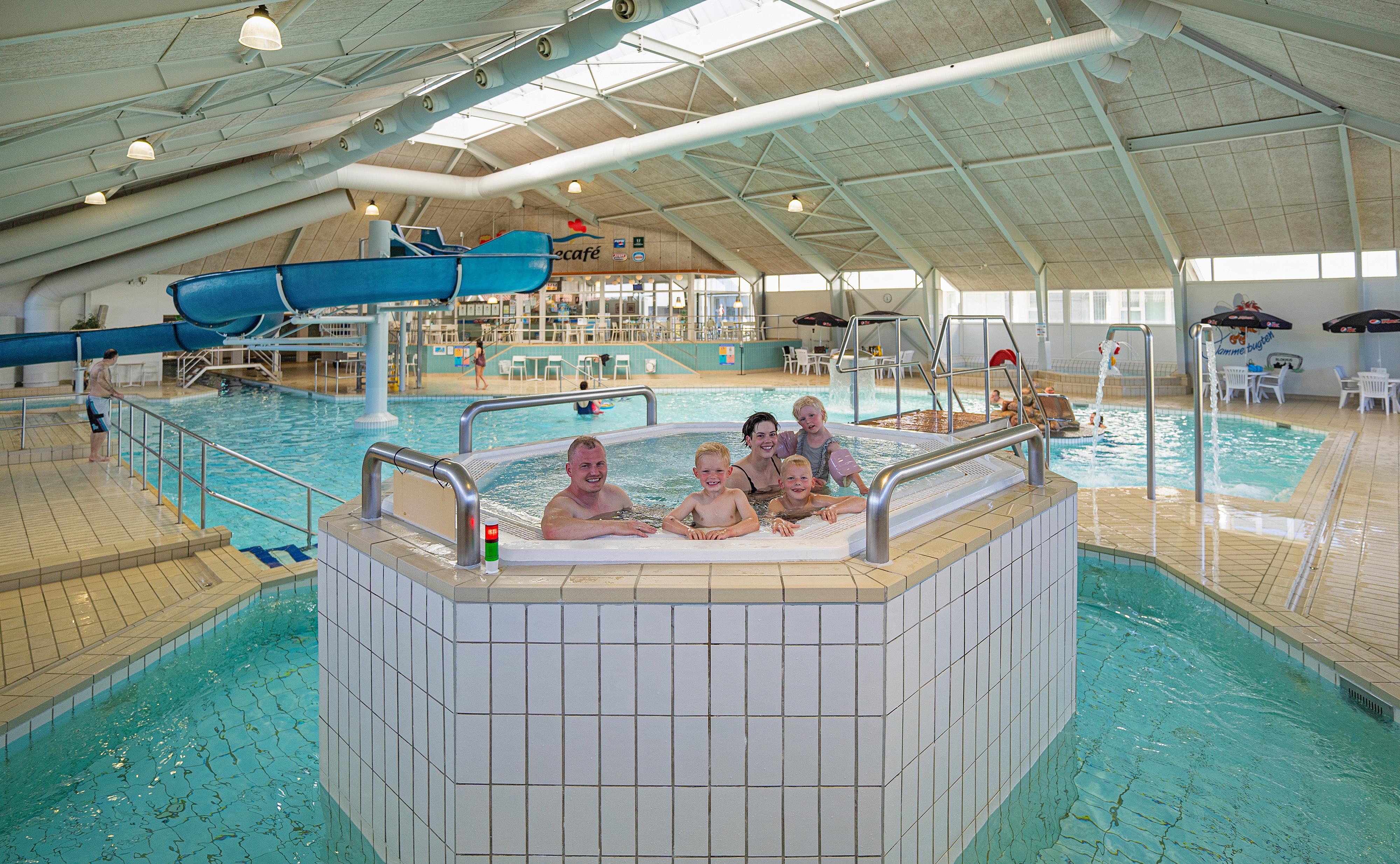 Badeland · Swimmingpool · Spa · Sauna · Poolcafé · Restaurant · Fitness- og wellnesscenter · Bordtennis · Pool billard · Airhockey · Spillemaskiner · Legeland · Møntvaskeri · Gratis internet i alle ferielejligheder