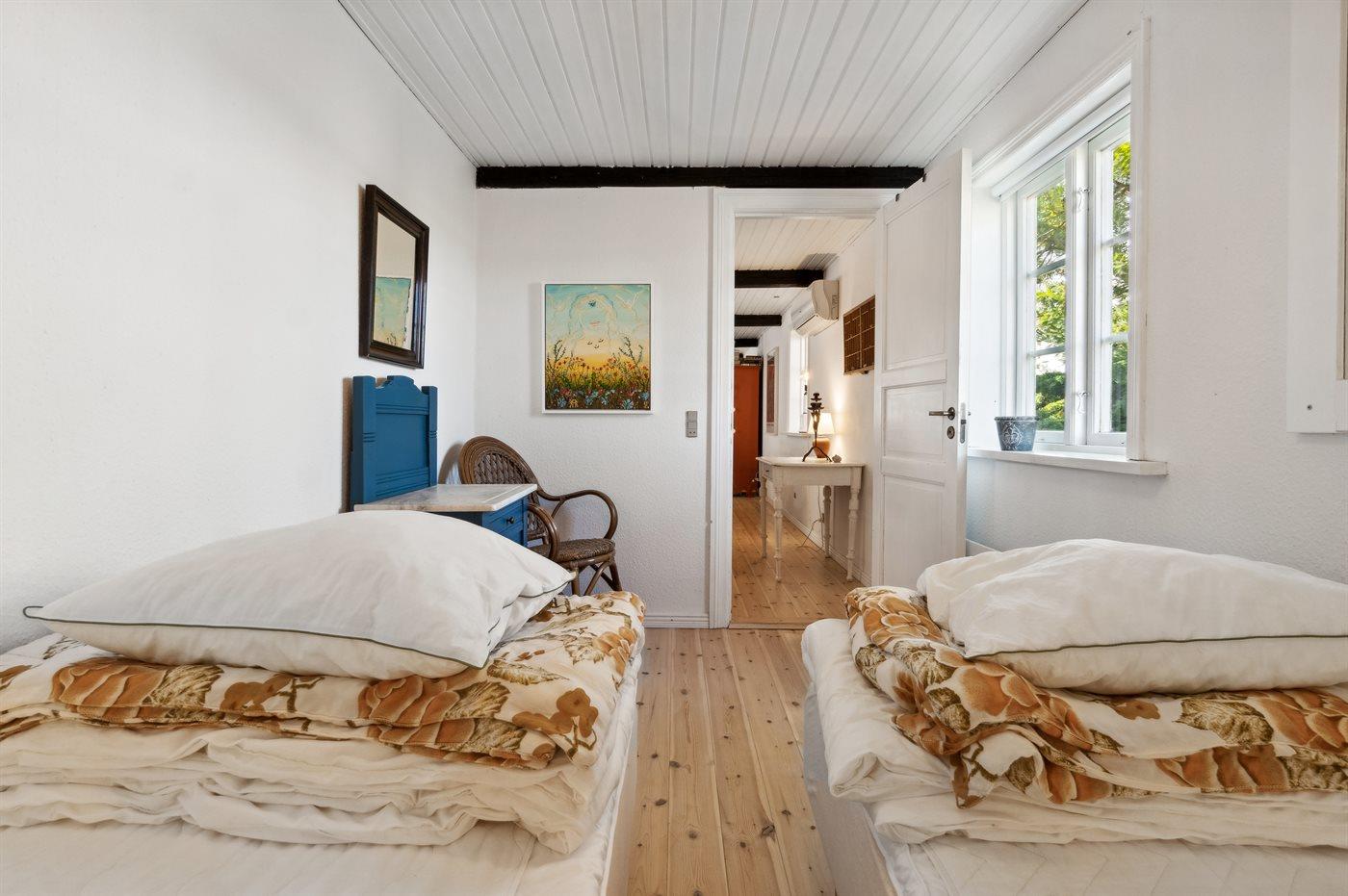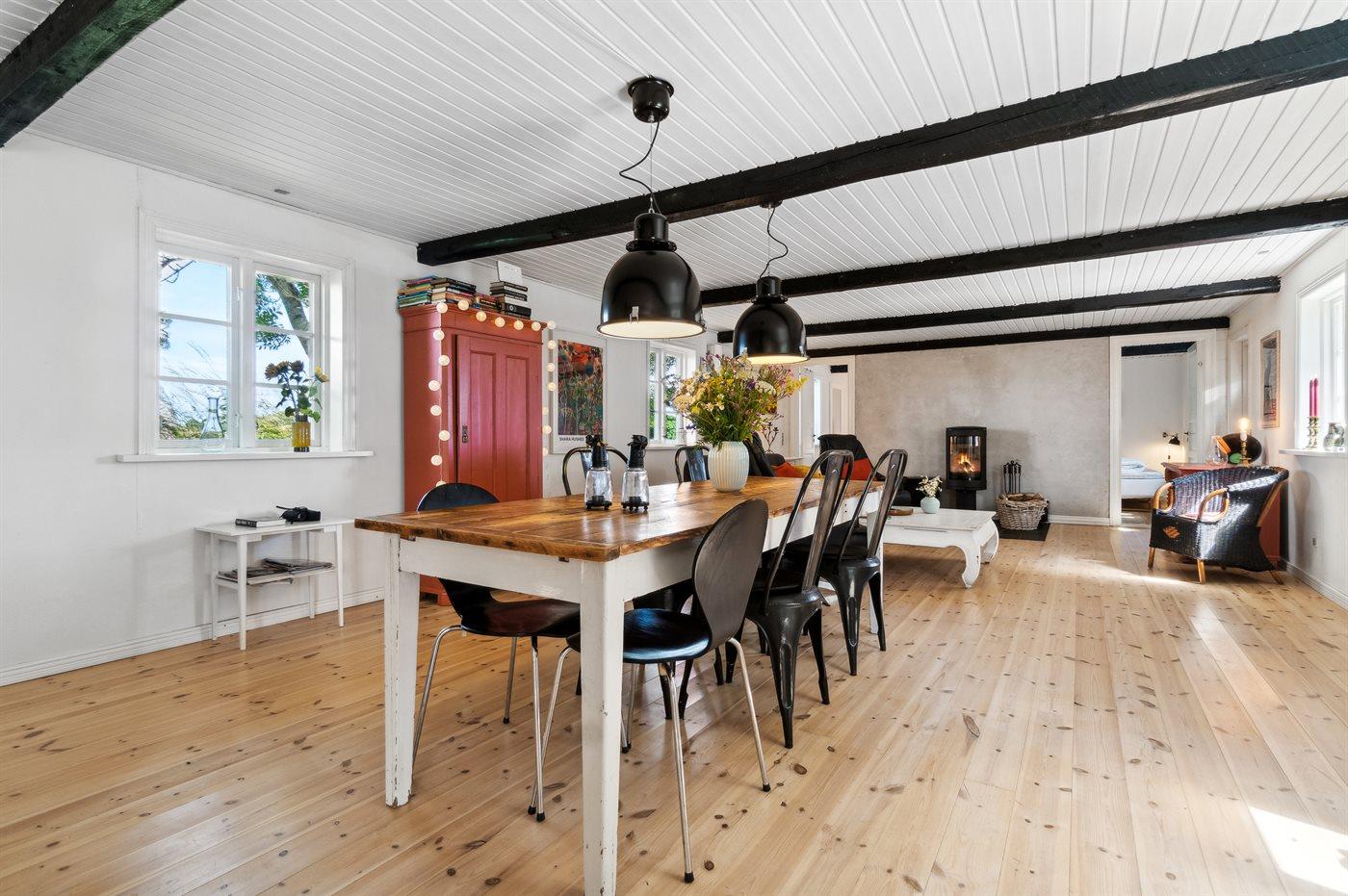 Husets have er lukket af ud mod vejen, og du får naturen på nærmeste hold. Der er plads til både leg og hygge i den store solrige og sydvendte have. Alt ånder fred og ro, og grunden er indrammet af marker og åbne vidder. Leg i den tilhørende lille naturskov er på eget ansvar. På den anden side af vejen finder du oldtidsattraktionen “Jættedal”, mens det hyggelige havnemiljø ved Boderne både byder på shopping, is og hvid sandstrand.