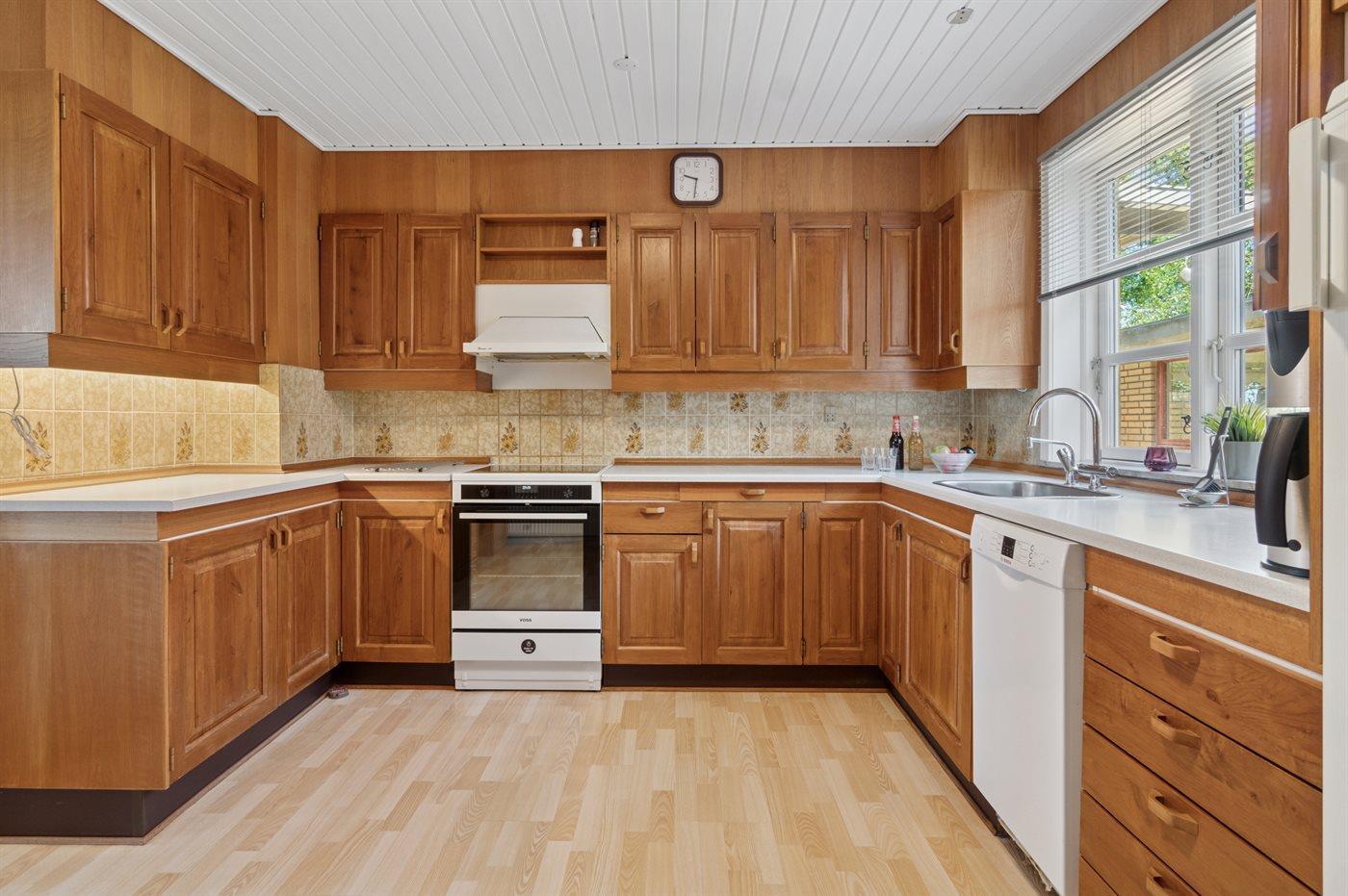 Køkkenet er udstyret med 1 køleskab. Der er 4 induktionskogeplader, varmluftovn, mikrobølgeovn samt opvaskemaskine.