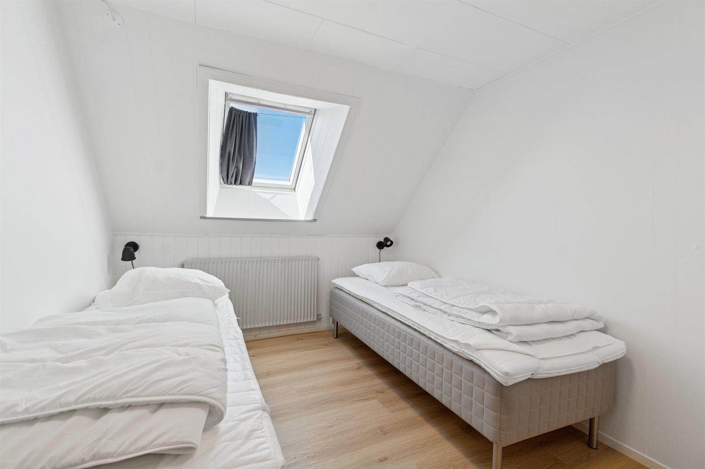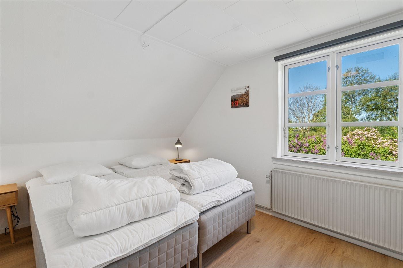 Der er i alt 4 soveværelser. Sovepladserne fordeler sig på: 4 sovepladser i dobbeltsenge. 4 sovepladser i enkeltsenge. Derudover er der 1 stk. barneseng.