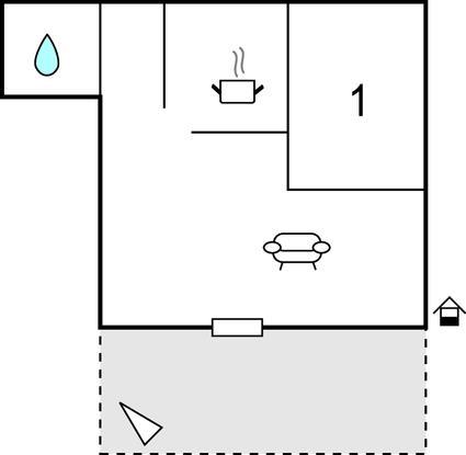 Opholdsstue/køkken - 1 Soveplads. (Sofa, madras eller lignende).
