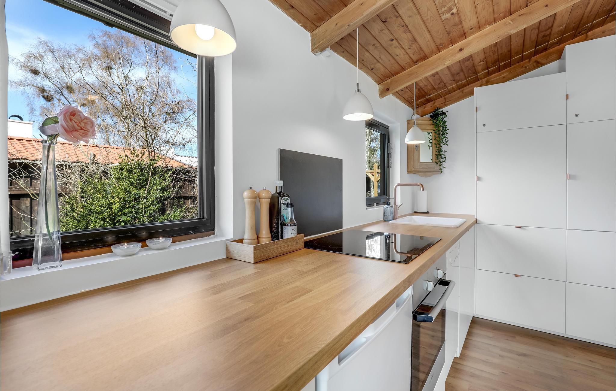 Velkommen til dette indbydende sommerhus, der består af to soveværelser, et badeværelse med gulvvarme, en hyggeligt indrettet opholdsstue med brændeovn, radio og TV og et åbent køkken, der bl.a. er udstyret med opvaskemaskine, fryser, varmluftsovn, keramisk komfur og spiseplads. Huset har varmepumpe og gratis trådløst internet (hurtigt og ubegrænset).