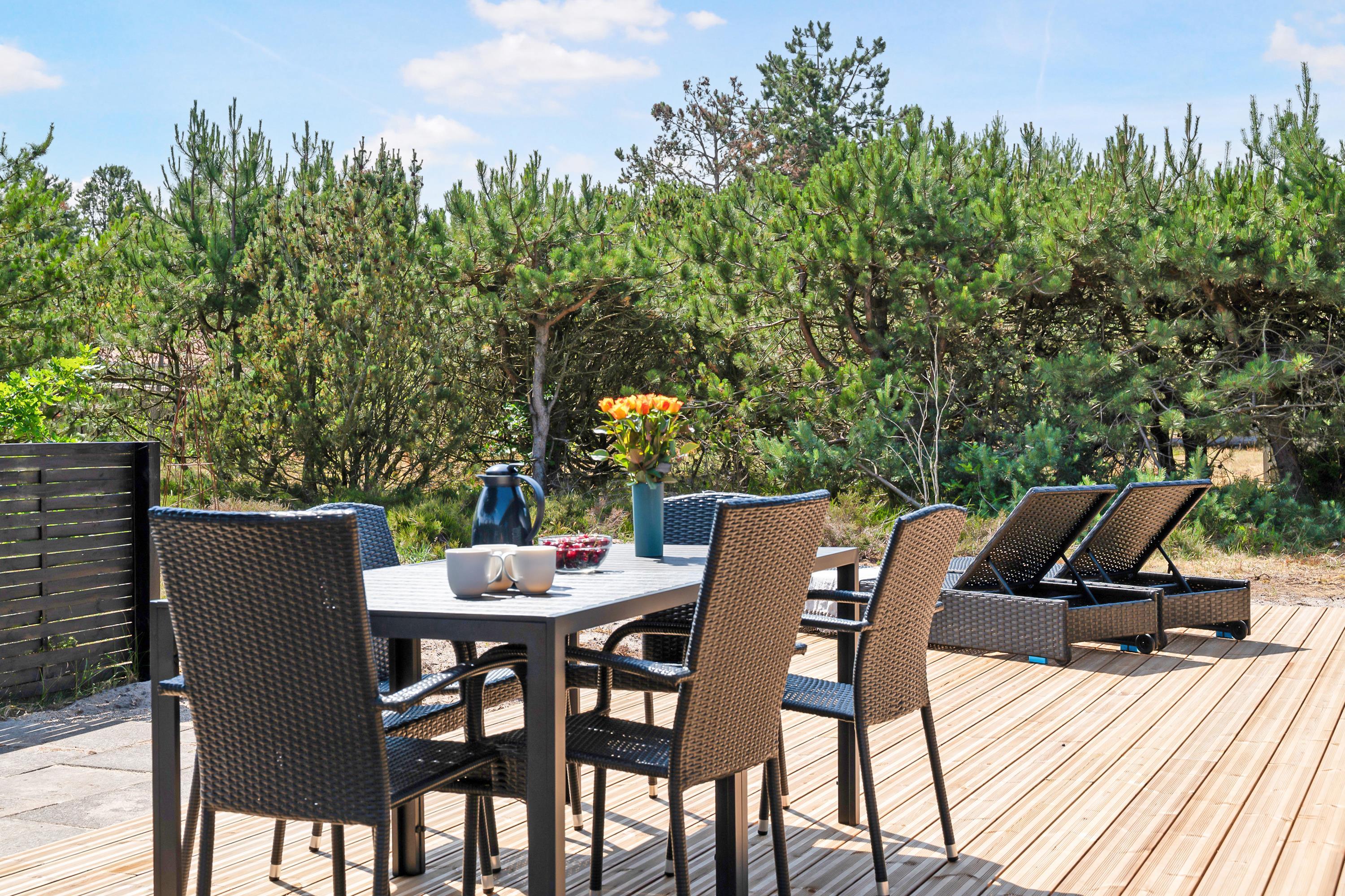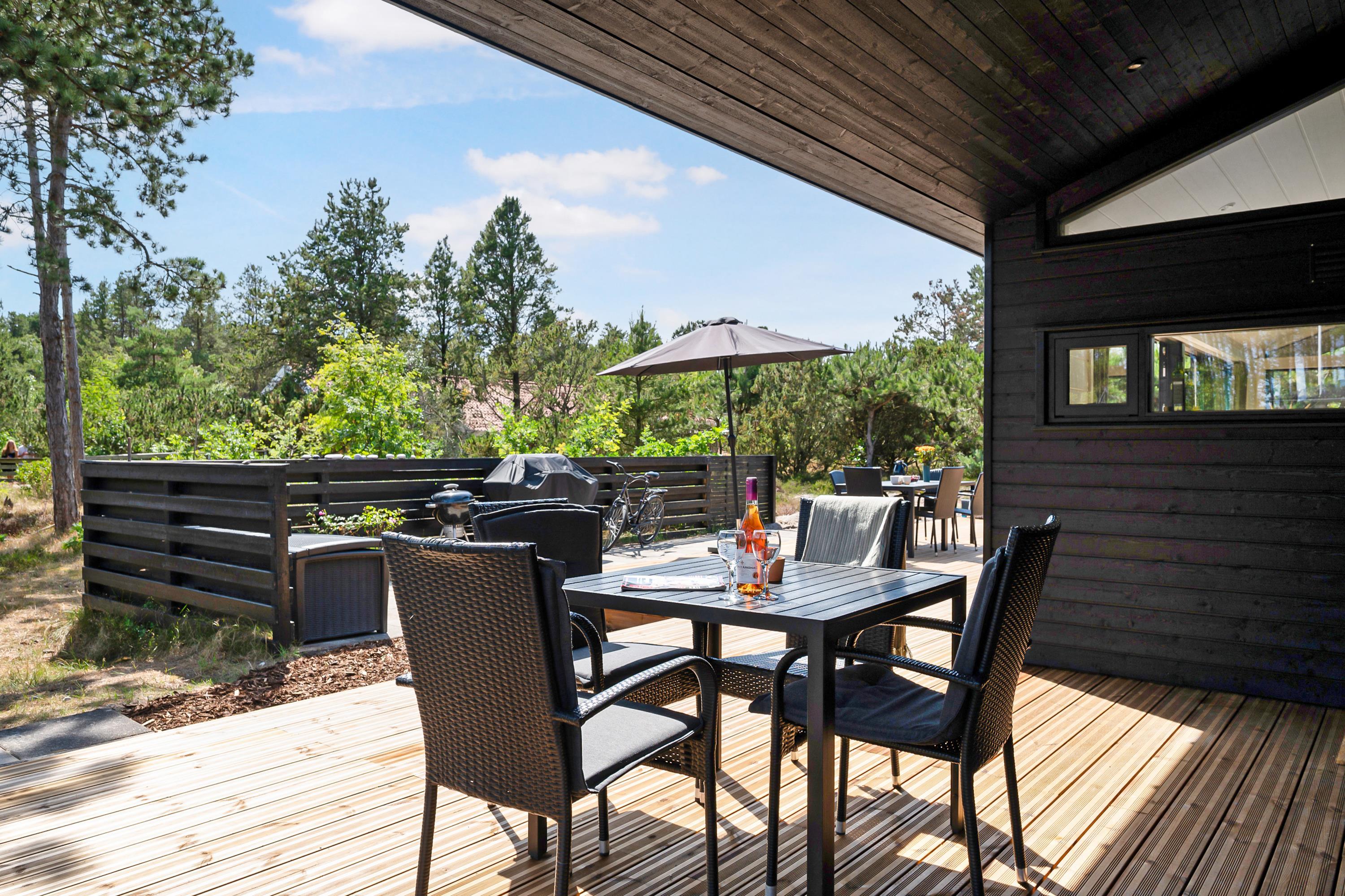 Virkelig lækkert nyopført hus kun 150 m. fra en skøn sandstrand. Huset er på 101 m2 og indeholder en stor lys og velindrettet stue med gode møbler, varmepumpe og biopejs. I forbindelse med stuen finder man den veludstyrede køkkenafdeling med køkkenø. Husets syv sovepladser fordeler sig i tre gode værelser; heraf to med dobbeltsenge og et værelse med en dobbeltseng og en køjeseng. To flotte badeværelser med gulvvarme og bruseniche. Dejlige terrasser ved huset, både overdækket og åben med havemøbler, liggestole og grill. Her kan man nyde udelivet og man er så tæt på vandet, at man kan høre havets brusen. Her er også en udendørsbruser. Til de små feriegæster vil der være en høj barnestol. Der er internet i huset.