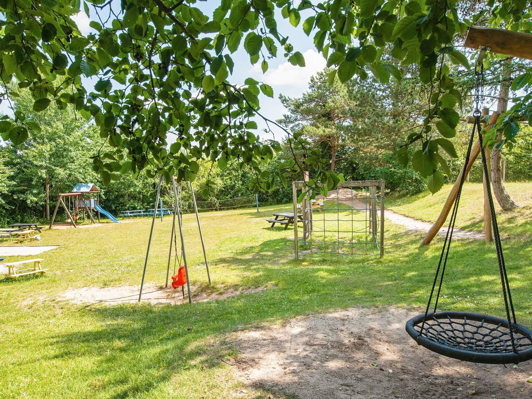 Dette feriehus er indrettet med lyse rum og et åbent opholdsområde, hvor køkken og stue er forbundet, hvilket skaber et praktisk og sammenhængende hjem. Huset indeholder to værelser, hvilket giver plads til hele familien. Udendørs er der flere rummelige terrasser, som giver mulighed for at opholde sig i både sol og skygge. Feriehuset ligger tæt på områdets legeplads, hvilket gør det nemt for børnene at lege i nærheden. Beliggenheden i et roligt område giver gode muligheder for afslapning og udendørs aktiviteter.