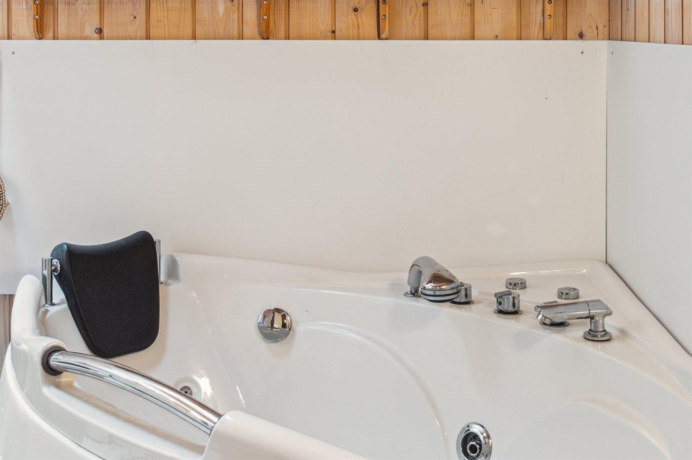 Der er 1 badeværelse med bruseniche og 2 toiletter, heraf 1 gæstetoilet. Der er gulvvarme på 1 badeværelse.. Badekar. I saunaen er der mulighed for afslapning.
