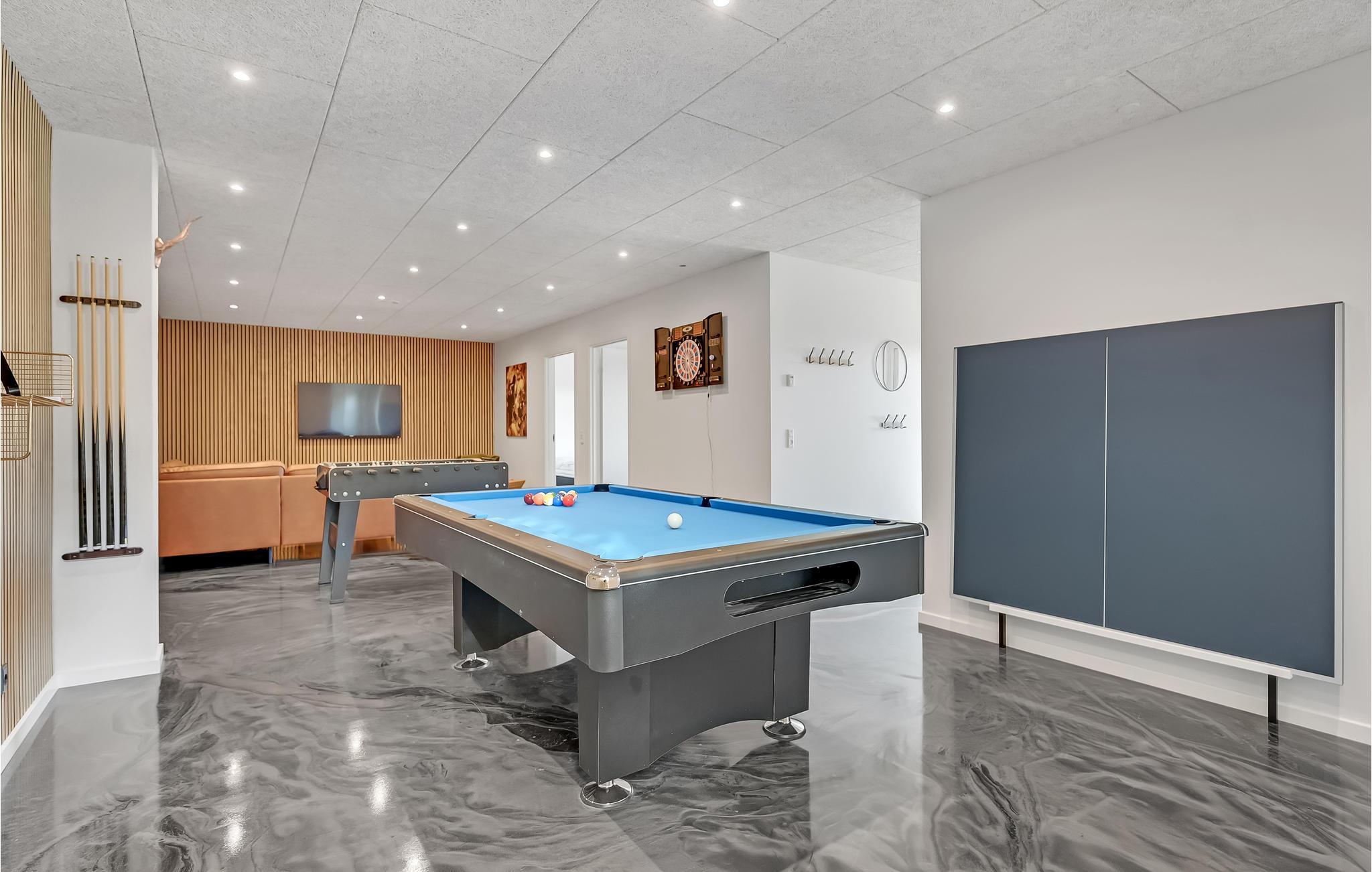 Glæd jer til en fantastisk ferie i dette lækre hus, hvor der er plads til, at invitere bedsteforældrene med eller en god vennefamilie. Her er der noget til alle aldre. Der er især tænkt på børnene. I aktivitetsrummet kan I dyste med et spil billard, bordtennis eller bordfodbold. Samme sted er der også et sofahjørne, hvor man kan kaste sig over videospil. Køkkenet er veludstyret og i åben forbindelse med spisestuen, så her kan I hygge jer med madlavningen og holde snakken kørende undervejs.