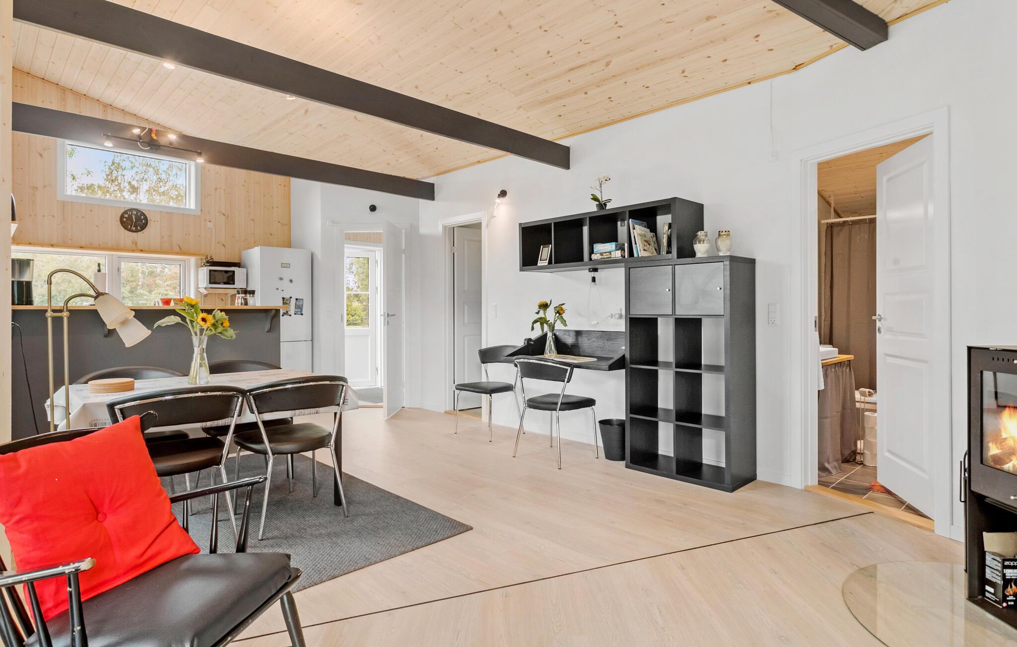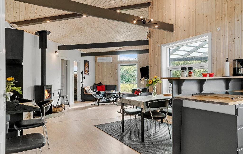 Velkommen til nogle dejlige dage på smukke Bogø. Her kan hele familien tilbringe nogle dejlige dage. Jeres base bliver dette indbydende hus, som er dejligt lyst og har højt til loftet. Nyd hyggestunderne i det store åbne opholdsrum, hvor I kan tænde op i brændeovnen og samles om brætspil, bøger og lækre måltider. Lyset falder behageligt ind fra vinduespartierne, og I har nem adgang til den velholdte have, hvilket bliver skønt, når vejret er varmt.