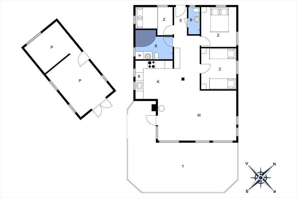 3 værelser: 1 dobbeltseng + skab, 1 dobbeltseng + skab. 1 værelse med 1 dobbeltseng samt TV.