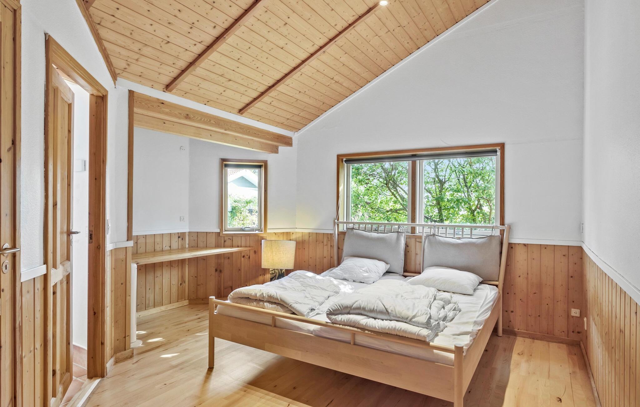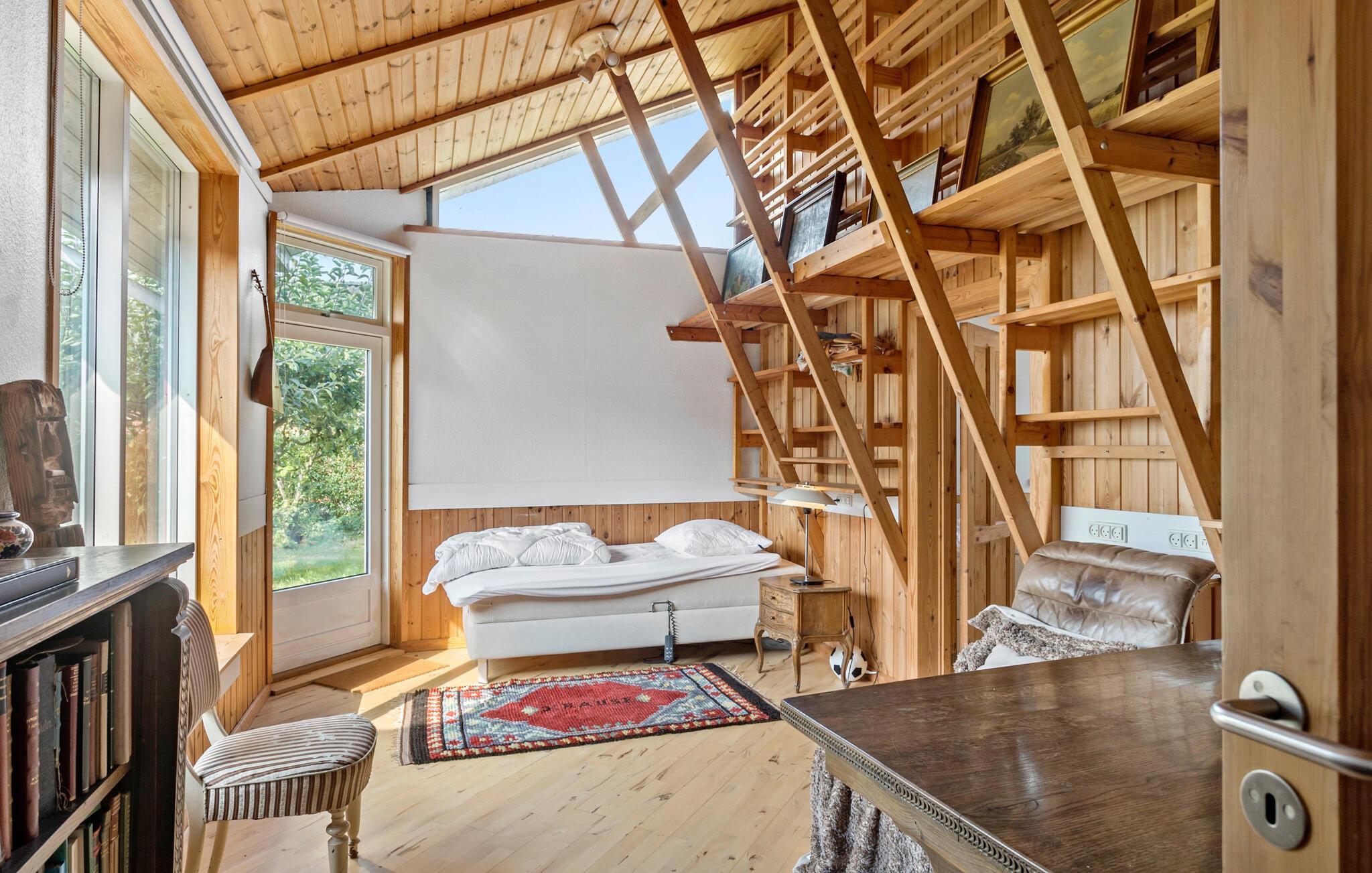 Hvis I er på udkig efter en dejlig base for årets ferie med den store familie, er dette indbydende træhus på Bogø det helt rette valg. Huset byder på mange kvadratmeter og en nydelig indretning med loft til kip, træpaneler og store vinduespartier, der giver et godt lysindfald og udsigt til omgivelserne og vandet. Lav en masse god mad i det veludstyrede køkken og nyd måltiderne ved spisebordet, inden I hiver brætspillene frem eller runder dagen af med en hyggelig filmaften. Måske børnene skal bygge huler og sove på hemsen?