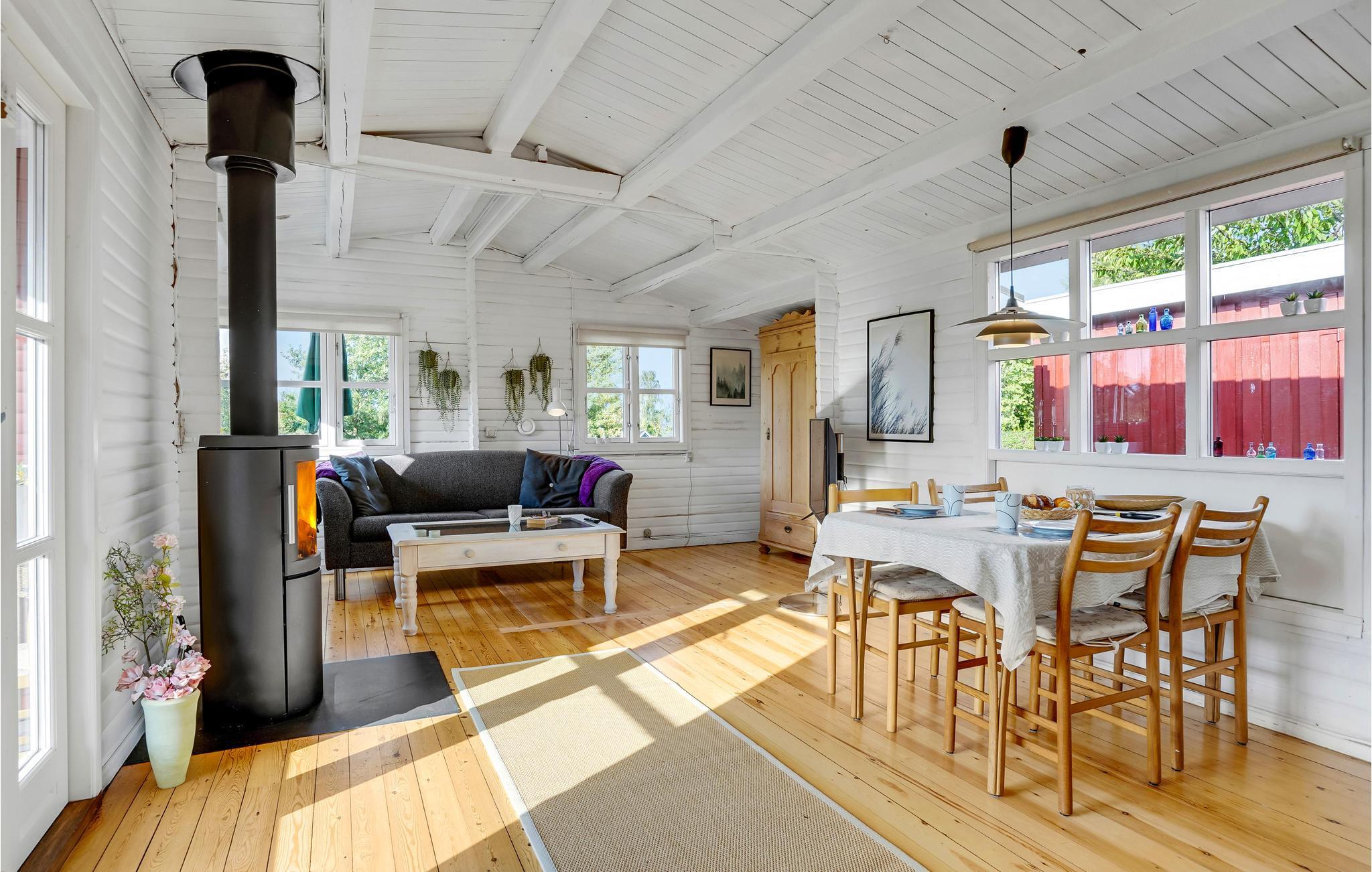 Træd ind i dette lyse, velindrettede feriehus og sænk skuldrene - her emmer det bare af feriestemning. Boligen er en romantisk ramme om jeres dage på Bogø, hvor I kun skal koncentrere jer om freden og roen. Læn jer tilbage i sofaen med en god serie, mens ilden knitrer i brændeovnen, hvis vejret er koldt udenfor. Når sommeren står på sit højeste, kommer I sikkert til at tilbringe størstedelen af tiden ude på den solbeskinnede terrasse.