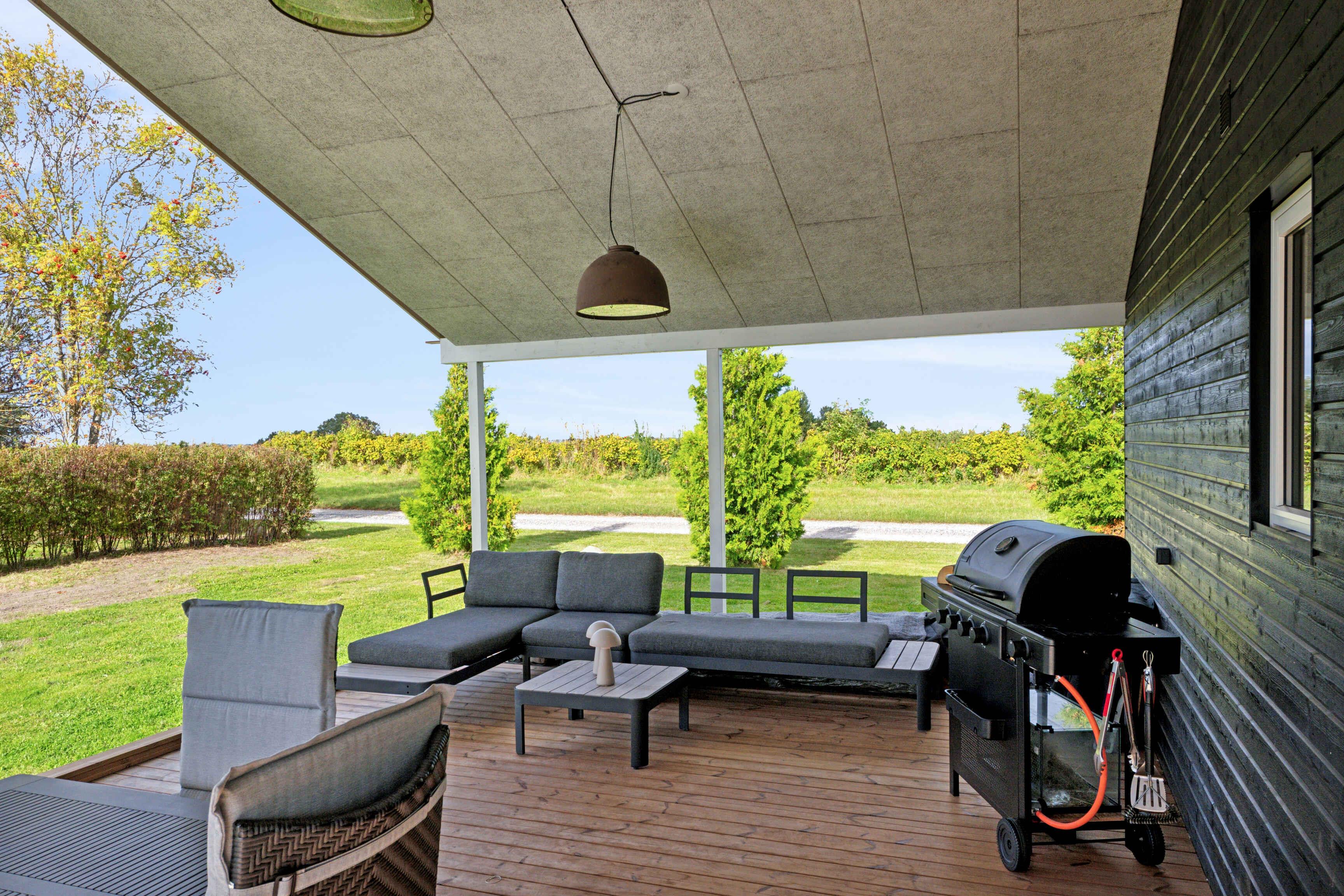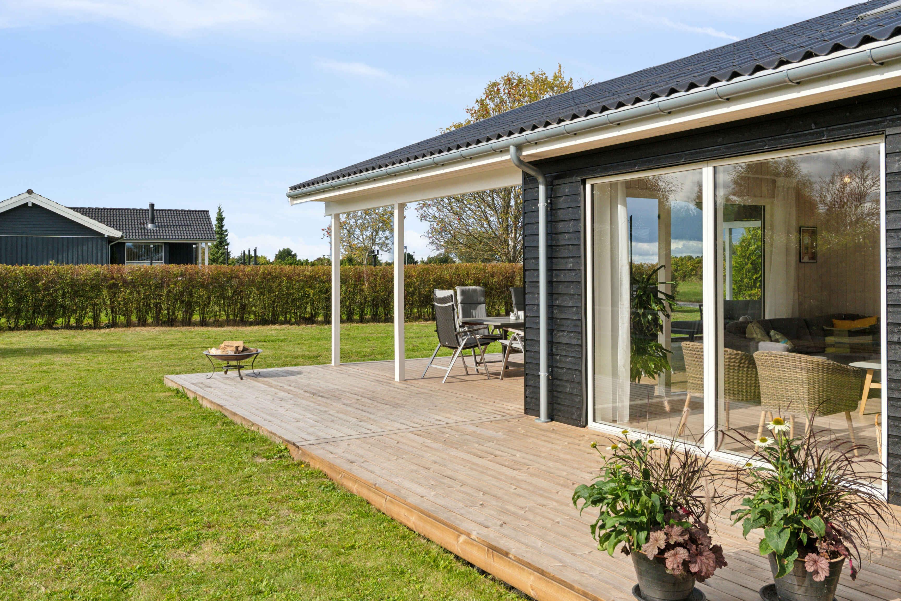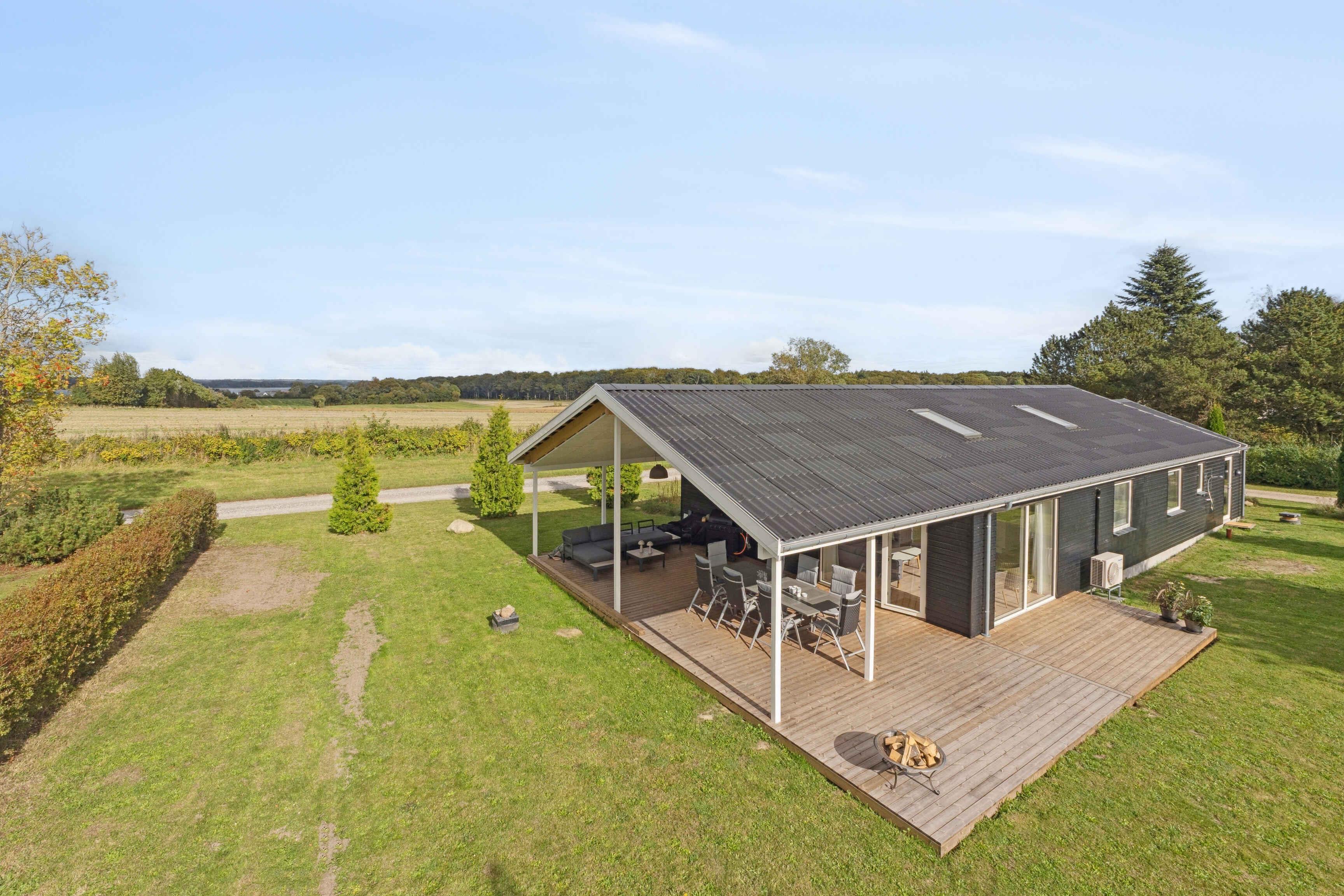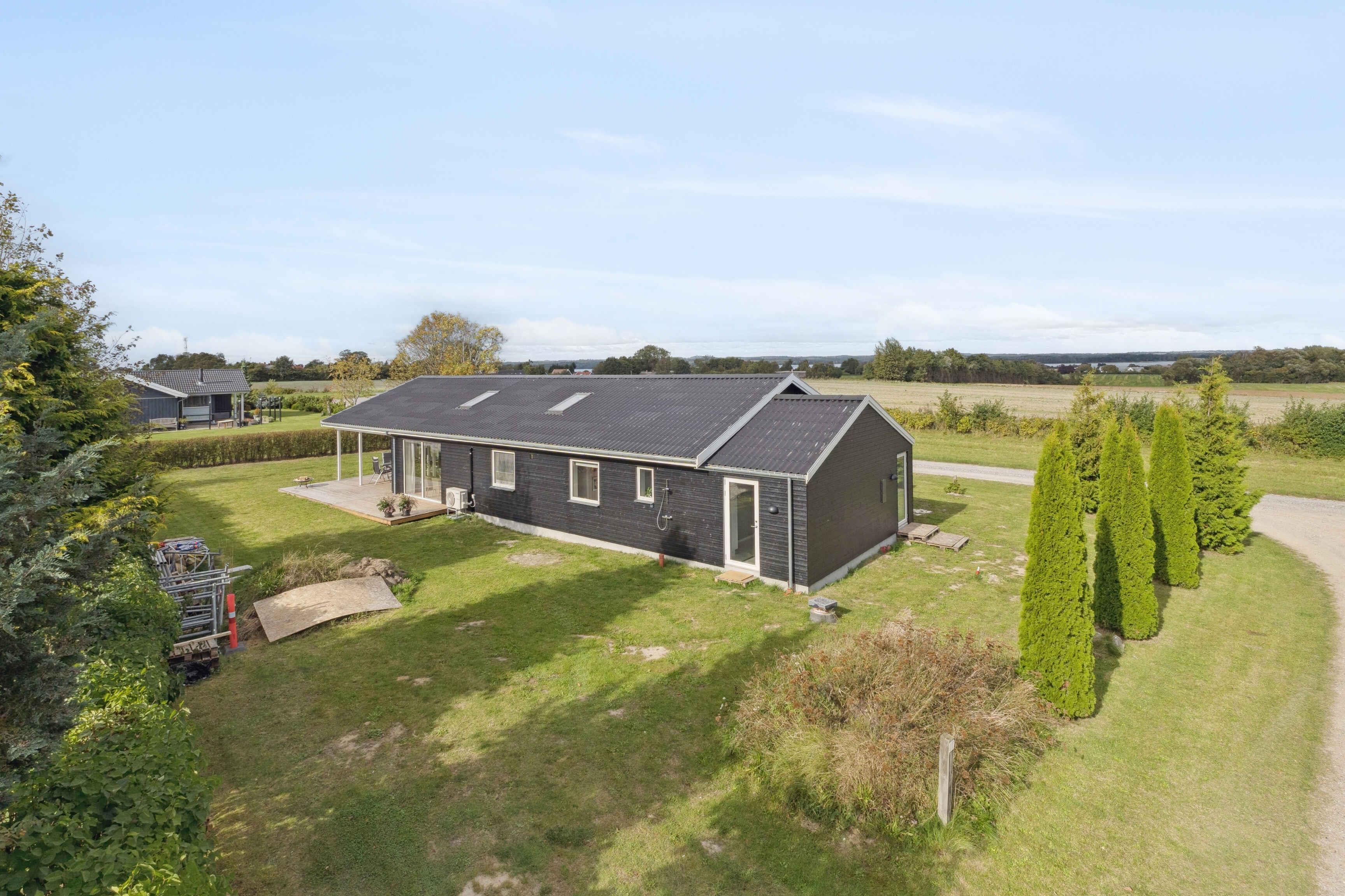 Nyt sommerhus med flot udsigt til marker og skov, varmepumpe, internet, grund med plads til leg, udekøkken, udebruser, legestativ, gynge rutsjebane