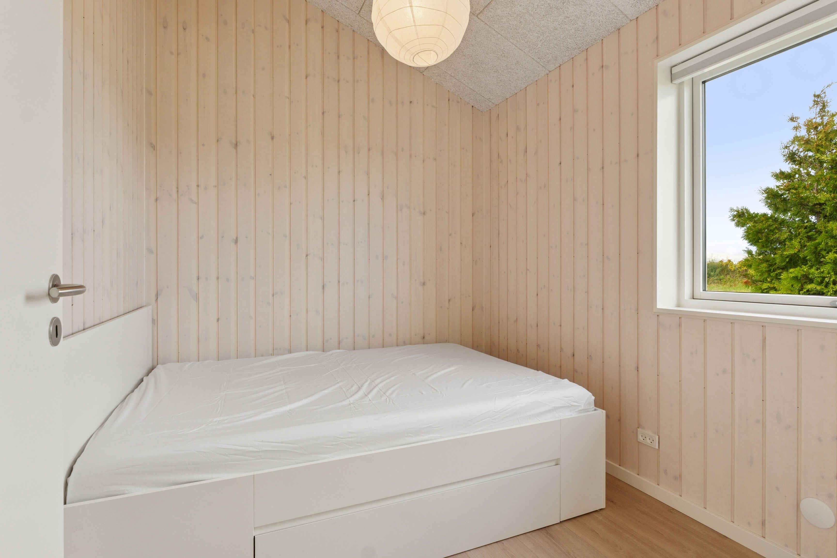 Dette sommerhus fra 2025 rummer 130 m² og er indrettet med fire soveværelser og i alt ti sovepladser. Det er et oplagt valg for større familier eller vennegrupper, der ønsker en ferie med plads til både samvær og privatliv. Huset har et åbent opholdsrum med køkken, spiseplads og stue i ét. Her kan måltider, leg og afslapning forenes. En varmepumpe sørger for et behageligt indeklima hele året, og der er internet tilgængeligt i hele huset. Der er to værelser med dobbeltseng (180/160 x 200 cm) og to værelser med lille dobbeltseng (140 x 200 cm) med hver en køje ovenover (90 x 200 cm) i huset. Haven er stor og byder på legestativ, gynge og rutsjebane. Samtidig er der god plads til boldspil, leg eller stille stunder i det grønne. Faciliteterne udenfor gør sommerlivet ekstra nemt. Her findes udekøkken til madlavning, en udendørs bruser til stranddage og en ladestander, så elbilen kan lades op direkte ved huset. Det gør opholdet både praktisk og fleksibelt. Området omkring huset har meget at tilbyde. Med 1,5 km til kysten er stranden tæt på. Her kan du bade, samle sten og muslinger eller gå langs vandet i aftensolen. Stranden er velegnet for både børn og voksne. Bogø er kendt for sin fredelige atmosfære og smukke natur. Øen har cykel- og vandreruter gennem skov og åbne marker. Ved havnen møder du det maritime miljø og en afslappet stemning, som indbyder til en is eller en gåtur. Fra Bogø er der kort afstand til Møn, hvor Møns Klint er et oplagt udflugtsmål. Her venter et dramatisk landskab, unikke udsigter og mulighed for fossiljagt. Samtidig byder området på hyggelige byer, kulturhistorie og små spisesteder. Sommerhuset er en ideel base for en ferie med variation. Her er plads til både leg, afslapning og udflugter. Kombinationen af moderne faciliteter, en stor have og nærhed til strand og natur giver gode rammer for en ferie, alle kan nyde. Sommerhuset er nybygget i 2025 dvs. der bygges stadig på huset. Man kan ikke se overkøjerne i værelse 2 og 4 samt legstativ/gynger/rutsjebane på billederne. Det bliver færdigt når vi starter udlejningen i marts 2026. Værelse 1: 1 dobbeltseng 180x200 Værelse 2: 1 dobbeltseng 140x200 + 1 overkøje Værelse 3: 1 dobbeltseng 160x200 Værelse 4: 1 dobbeltseng 140x200 + 1 overkøje