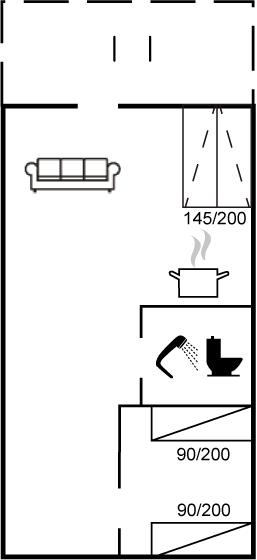 Der er i alt 1 soveværelse. Sovepladserne fordeler sig på: 2 sovepladser i enkeltsenge. 2 sovepladser i sovesofa (dobbelt).