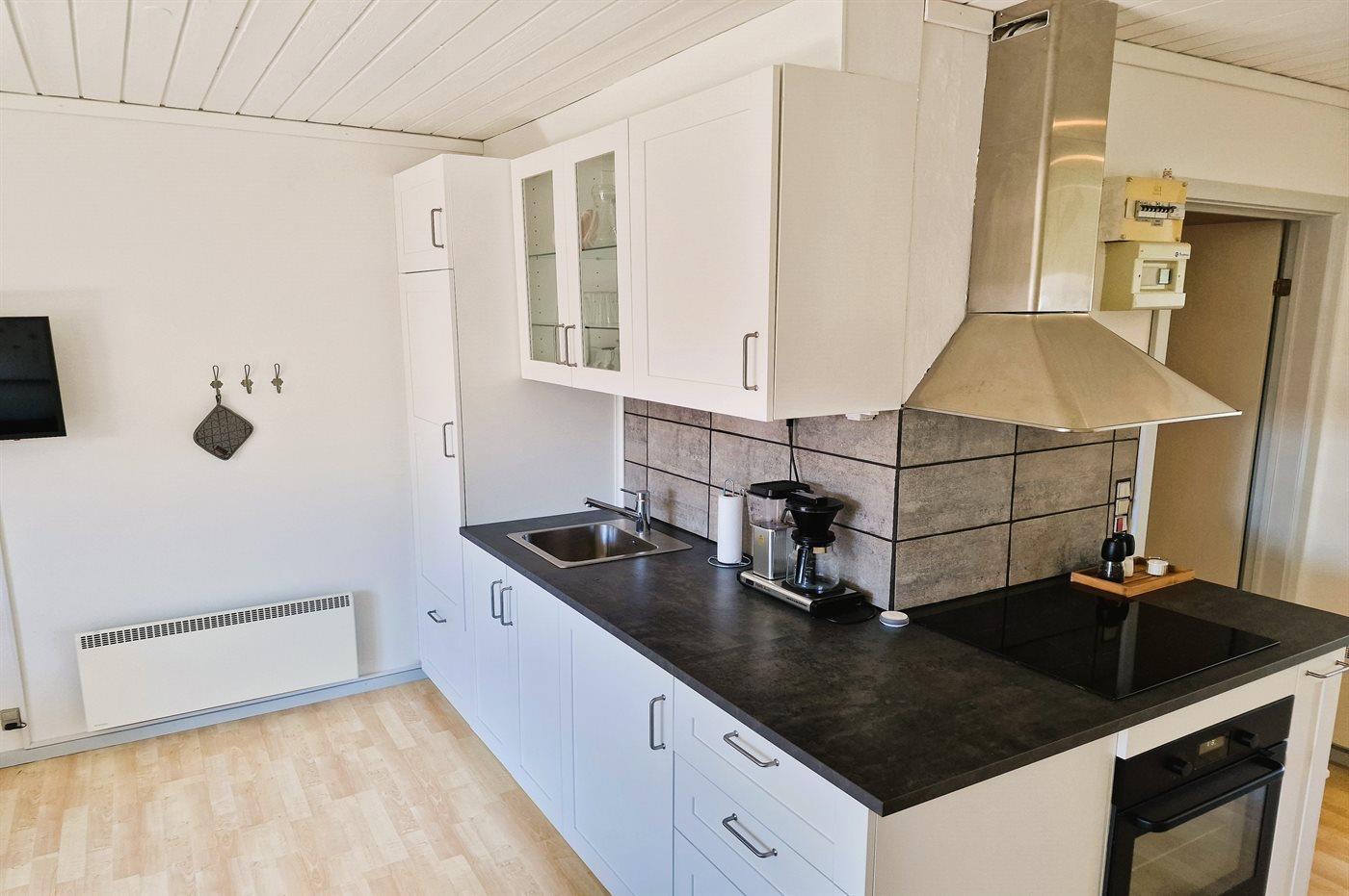 Køkkenet er udstyret med 1 køleskab. Der er 4 induktionskogeplader, varmluftovn, mikrobølgeovn.