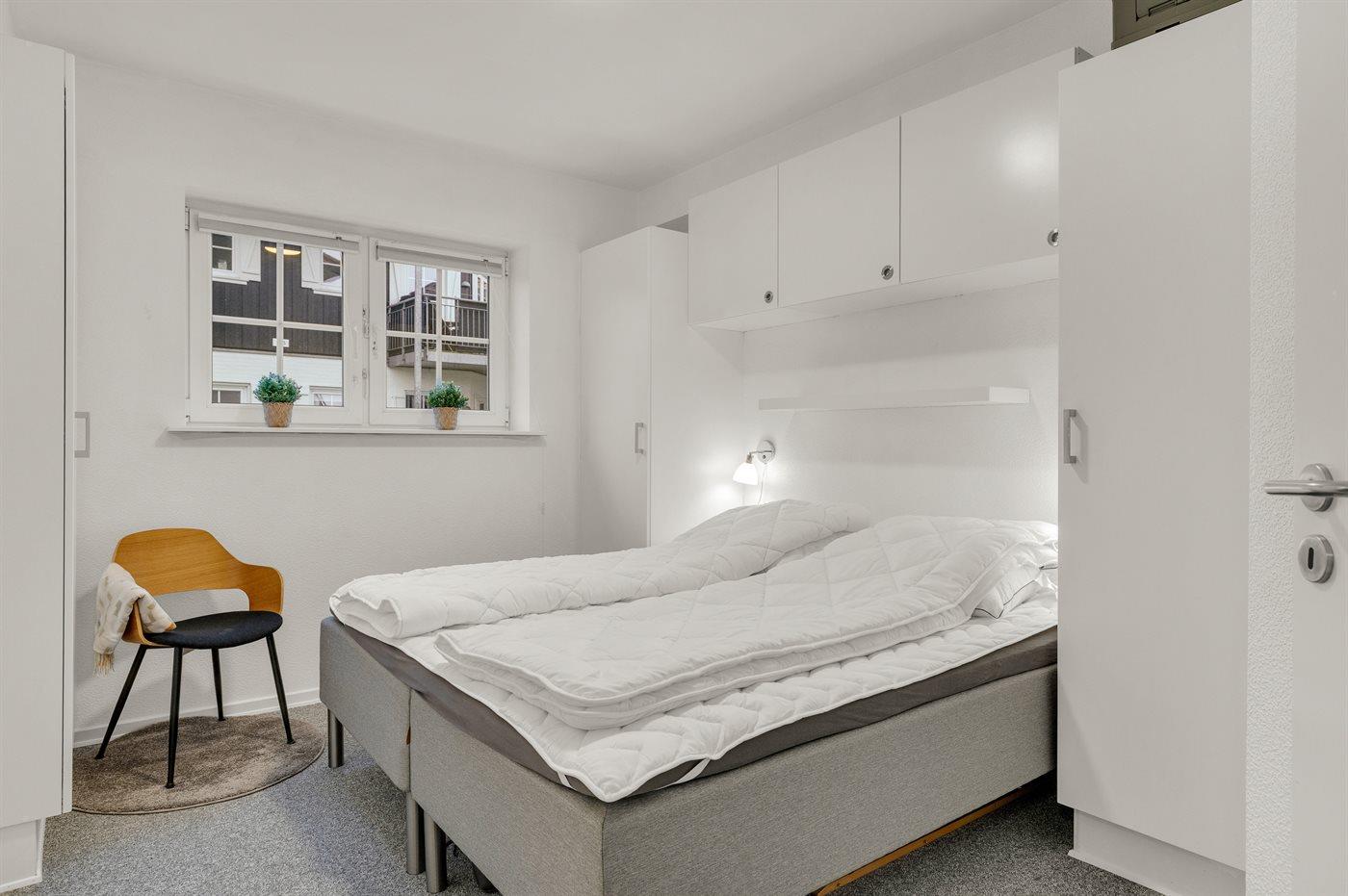 Der er i alt 2 soveværelser. Sovepladserne fordeler sig på: 2 sovepladser i dobbeltseng. 2 sovepladser i køjeseng.