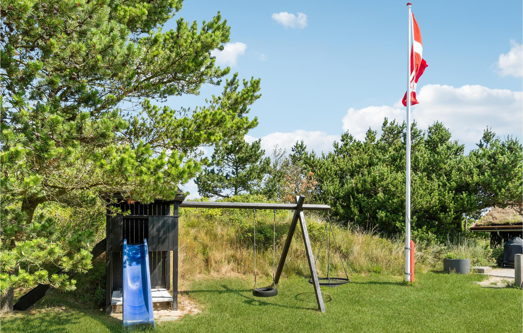 Hyggeligt sommerhus på stor naturgrund tæt ved Lakolk strand med gårdhave, grill og legefaciliteter.