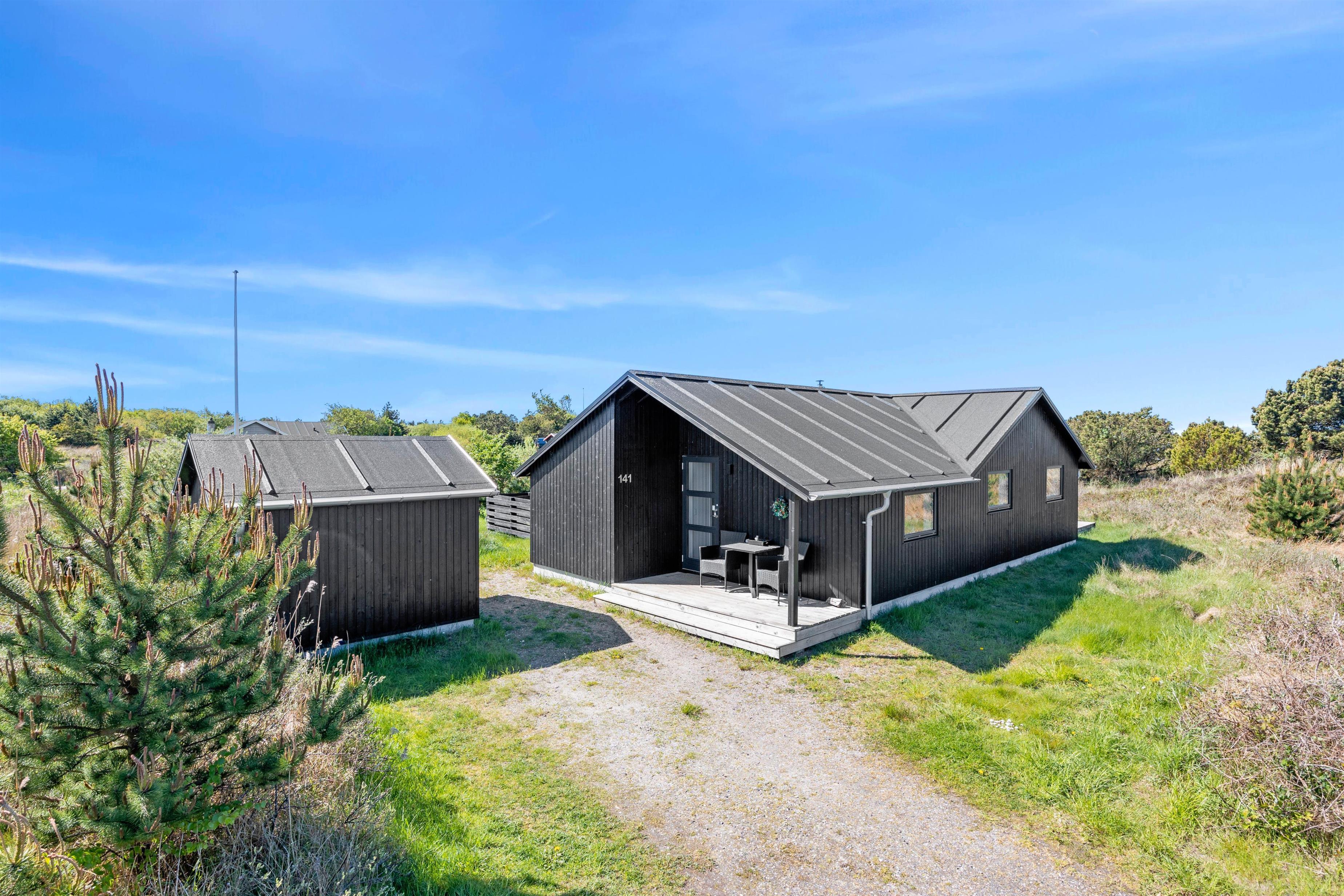 Omgivet af en kuperet, 2500 m2 stor naturgrund ligger dette feriehus midt i det betagende hedelandskab. På terrassen finder I behagelige havemøbler, hvorfra I kan observere naturen eller blot nyde solen. Dette sted indbyder til mange hyggelige stunder på en lun sommerdag.