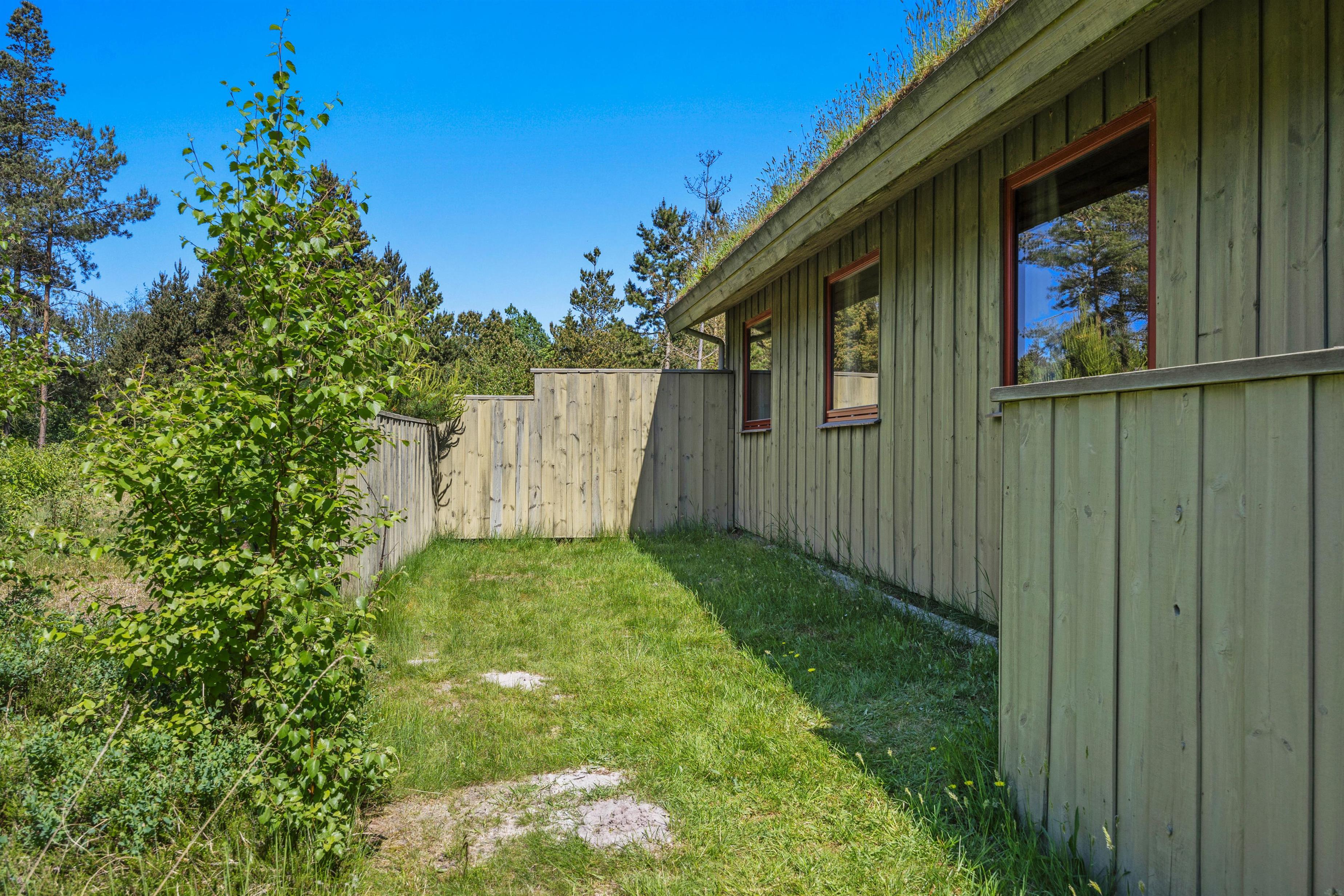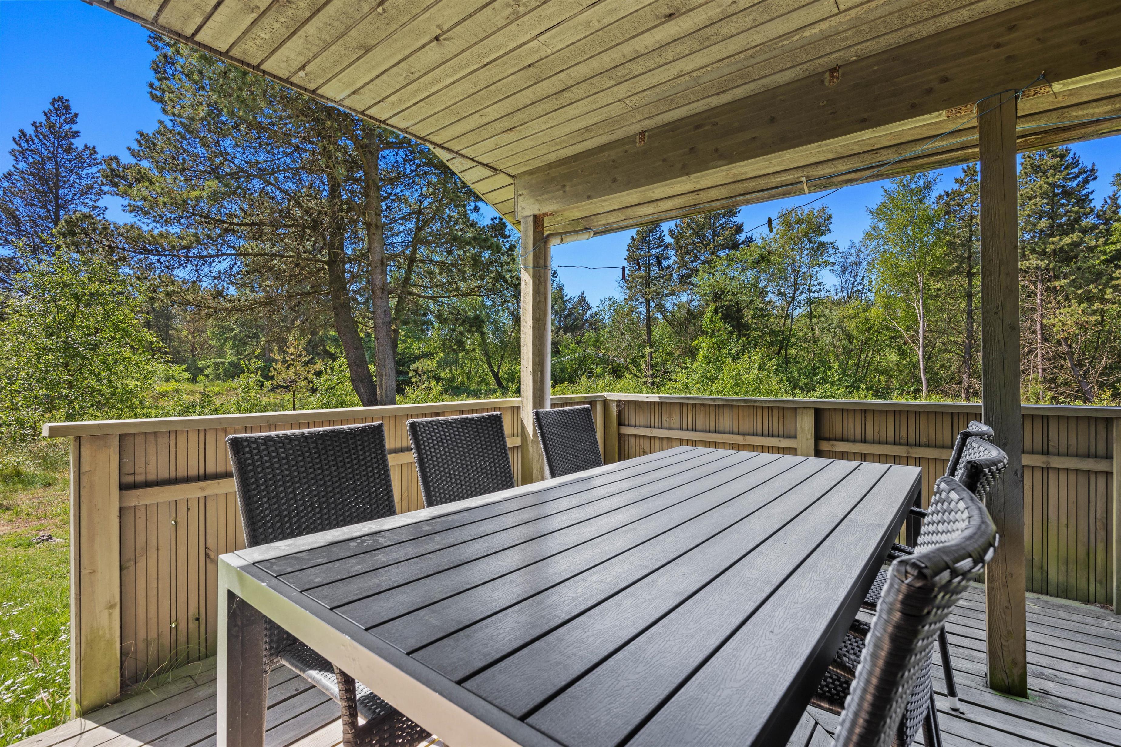 Udenfor kan I nyde sommersolen fra havemøblerne og bruge grillen på den overdækkede terrasse, hvilket er ideelt til hyggelige aftener med grillmad. Sommerhuset er beliggende på en naturlig afskærmet naturgrund, der værner om privatlivet under jeres ferie. Her er der også god plads til, at børnene kan lege, mens I ser på fra en liggestol.