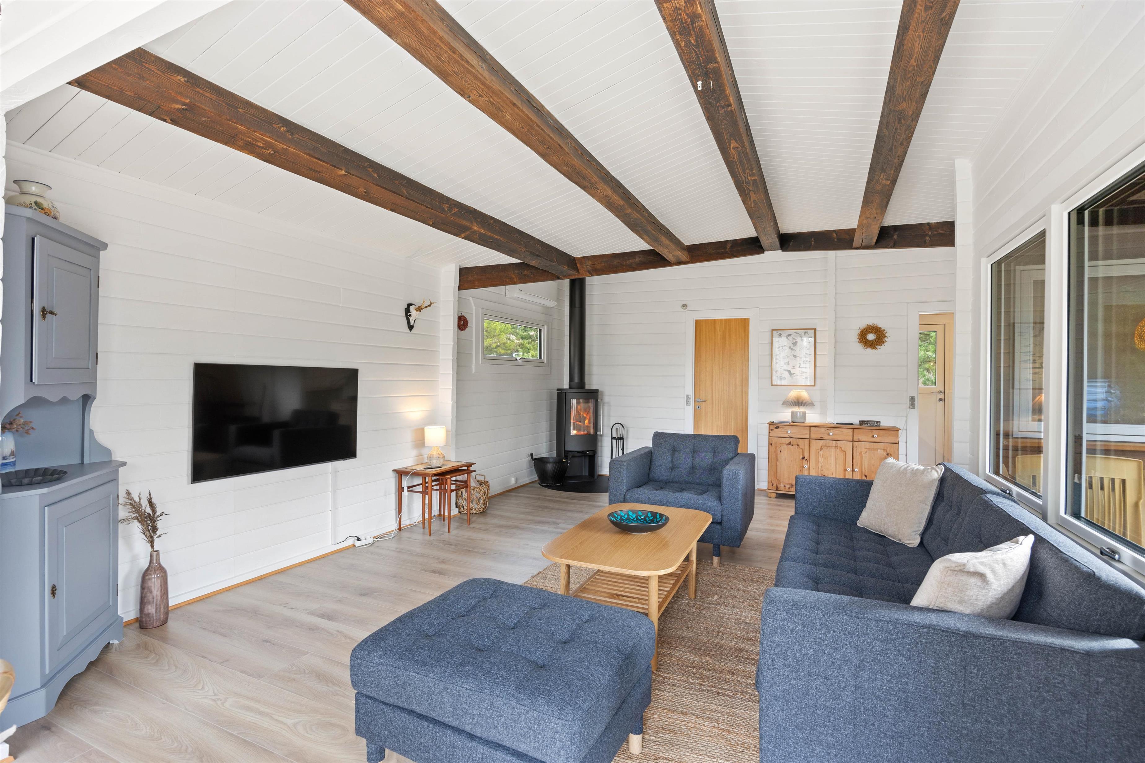 Velkommen indenfor på Trinnesvej 1! Et hyggeligt sommerhus, der emmer af sommerhusstemning med træbeklædte vægge, smukke loftbjælker og en knitrende brændeovn. Brændeovnen bidrager til en varm og indbydende atmosfære, perfekt til de køligere aftner. I stuen kan hele familien samles til mange gode stunder med brætspil, ferielæsning og meget mere!