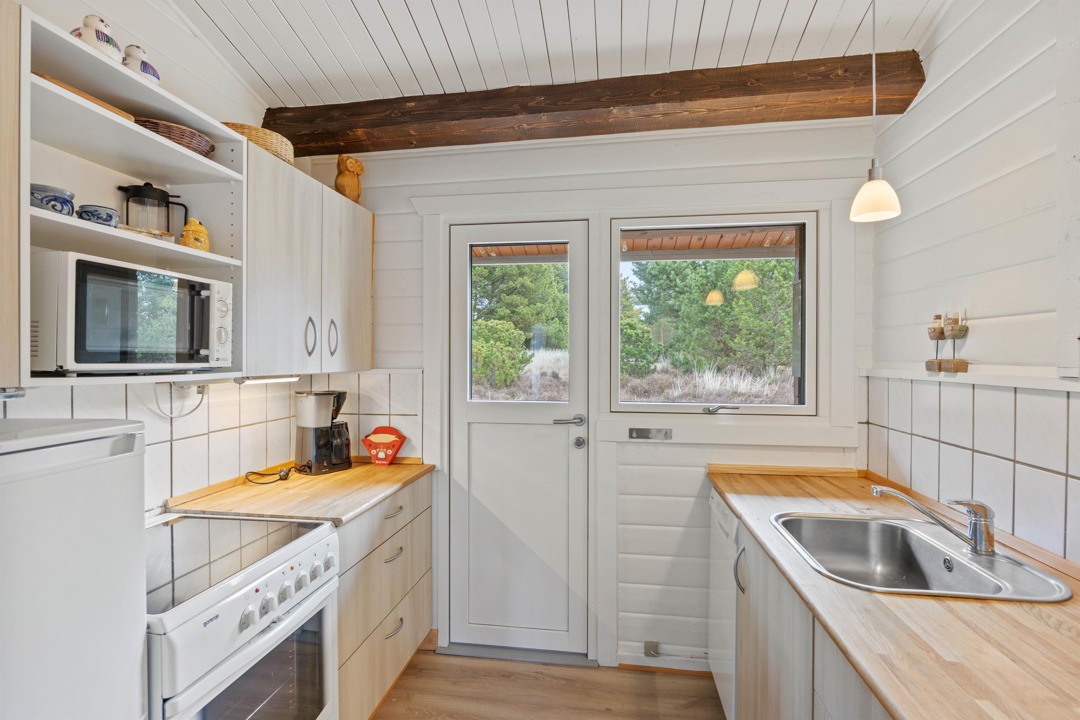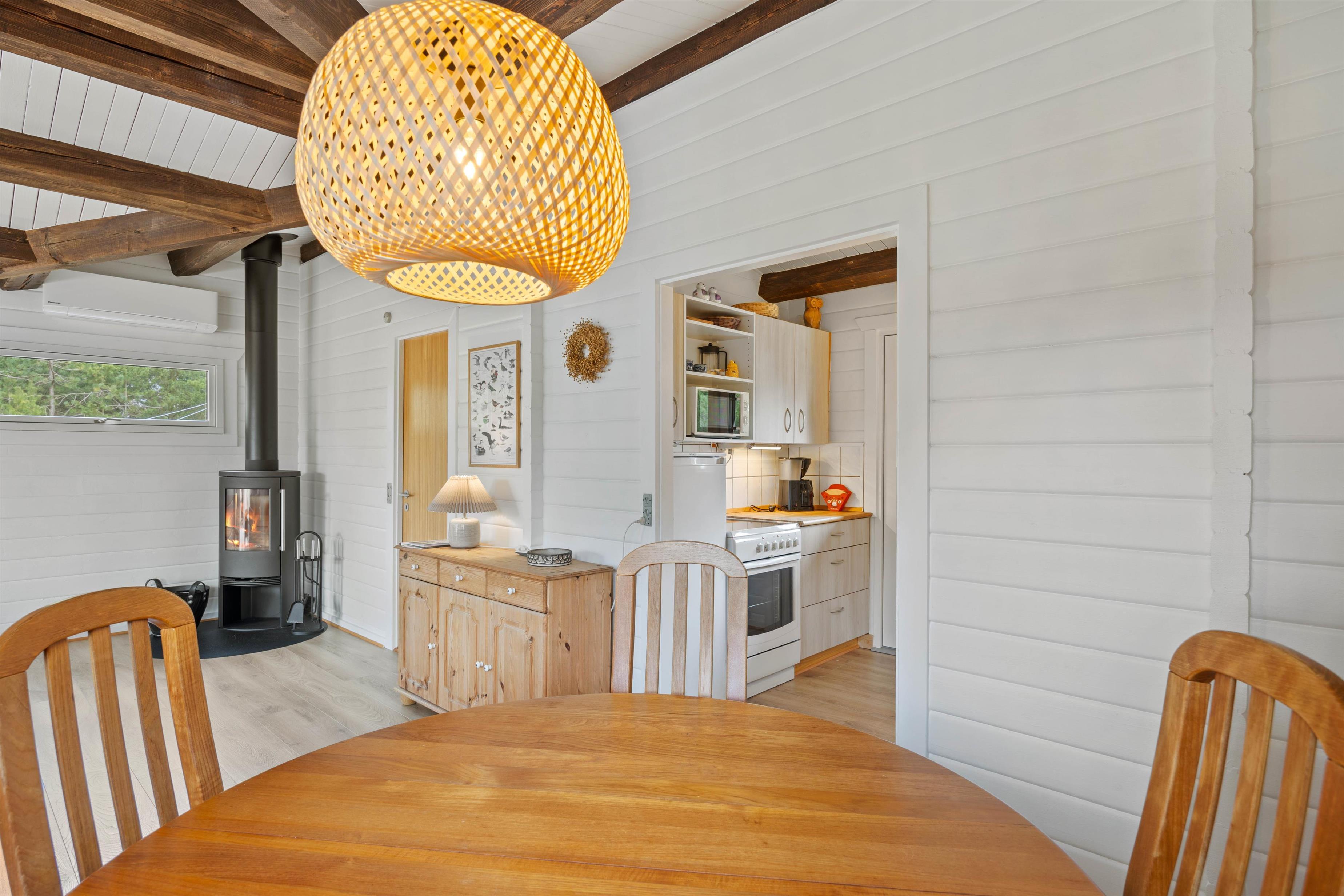 Her er lille fint køkken med tilhørende spiseplads. Her kan I nyde lækre egnsretter eller drikke varm kakao på en kølig efterårsdag. Her er 3 fine soverum samt badeværelse med gulvvarme.