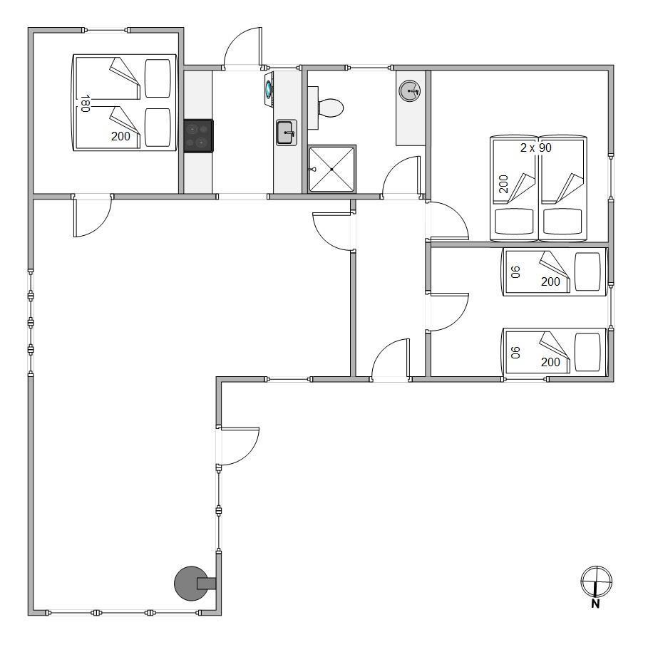 Omkring sommerhuset er terrasse og en indhegnet have, ideelt hvis I har småbørn eller hunde med. Terrassernes placering og de mange gode kroge gør, at I altid kan finde en behagelig plet at opholde jer på udendørs. Til børnene er der en sandkasse, og sammen kan I spille et boldspil eller et spil Viking. Tag solbad på de komfortable liggestole eller slap af i havemøblerne. Tænd op i grillen til aften,og nyd et lækkert grillmåltid sammen, før børnene skal sove, eller I skal ned på stranden og opleve solnedgangen.